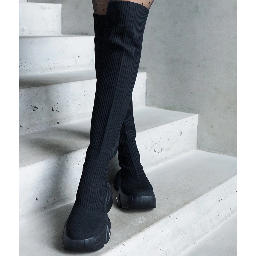 Wir präsentieren Black Slip Stiefel mit einem elastischen Obermaterial von einer anderen Marke, die sich mit ihrem modernen Design und Komfort des Tragens erfreut. Diese eleganten Musketiere mit einer Kniehöhe (63 cm) betonen die Figur perfekt und ihre klassische schwarze Farbe macht sie zu vielen Stilen - vom Alltag über das Büro bis hin zu Abendausflügen.