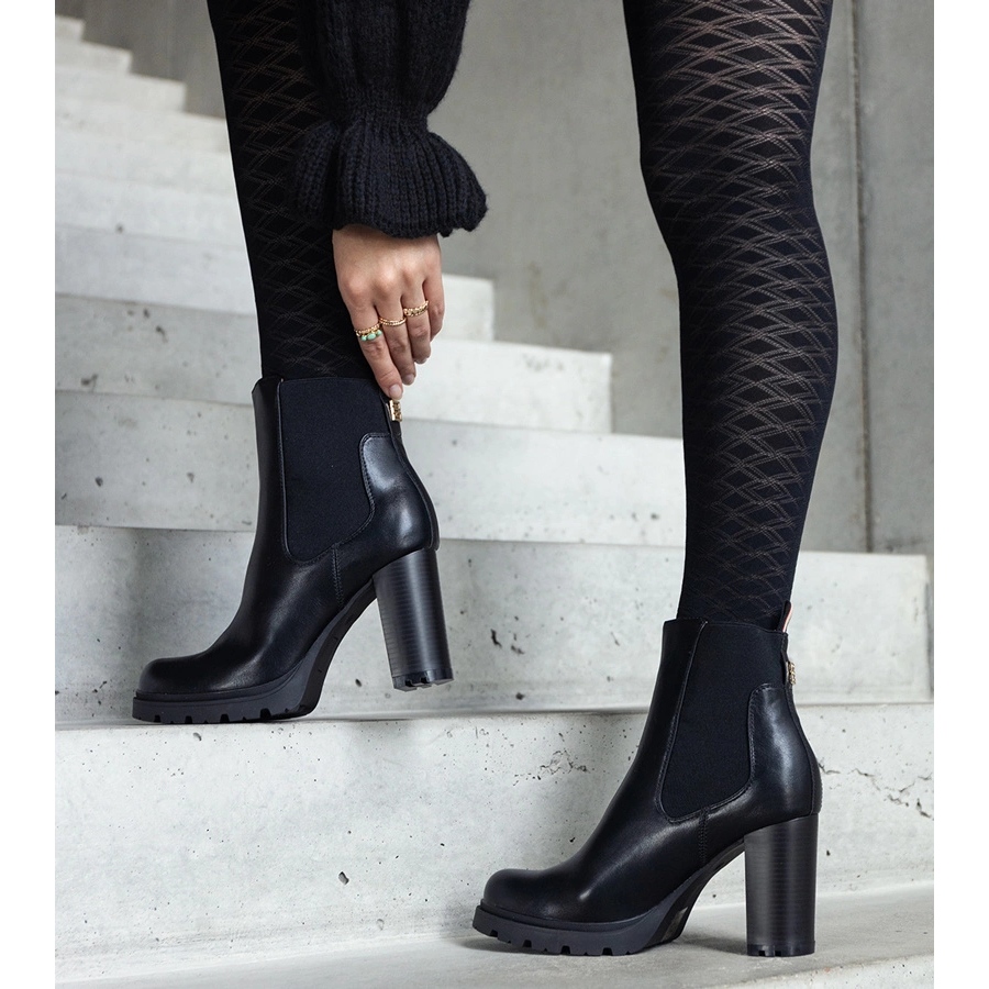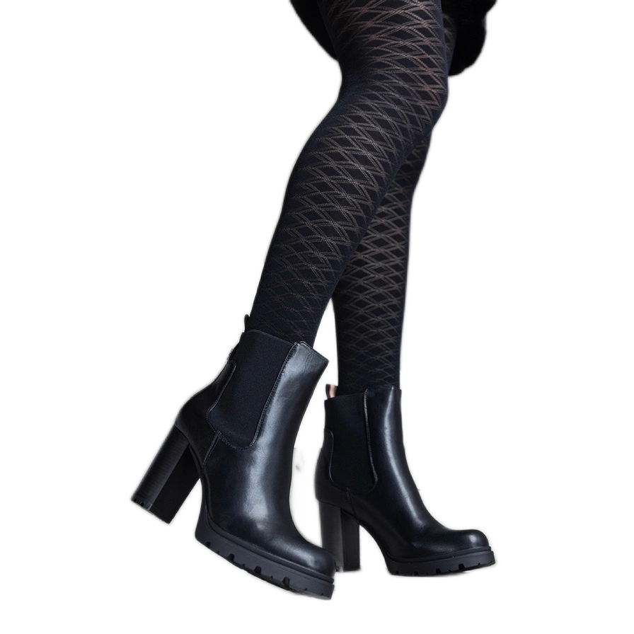 Entdecken Sie die einzigartigen schwarzen Slip -UP -Stiefel auf dem Modena -Post, die eine ideale Kombination aus Eleganz und Komfort darstellen. Diese Stiefel aus hochwertigem Faux-Wildleder erfreuen sich mit ihrem minimalistischen Design, das in jede moderne Garderobe passt. Die High Heel mit einer Höhe von 9,5 cm verlängert die Beine nicht nur optisch, sondern verleiht auch den gesamten Styling -Stil.