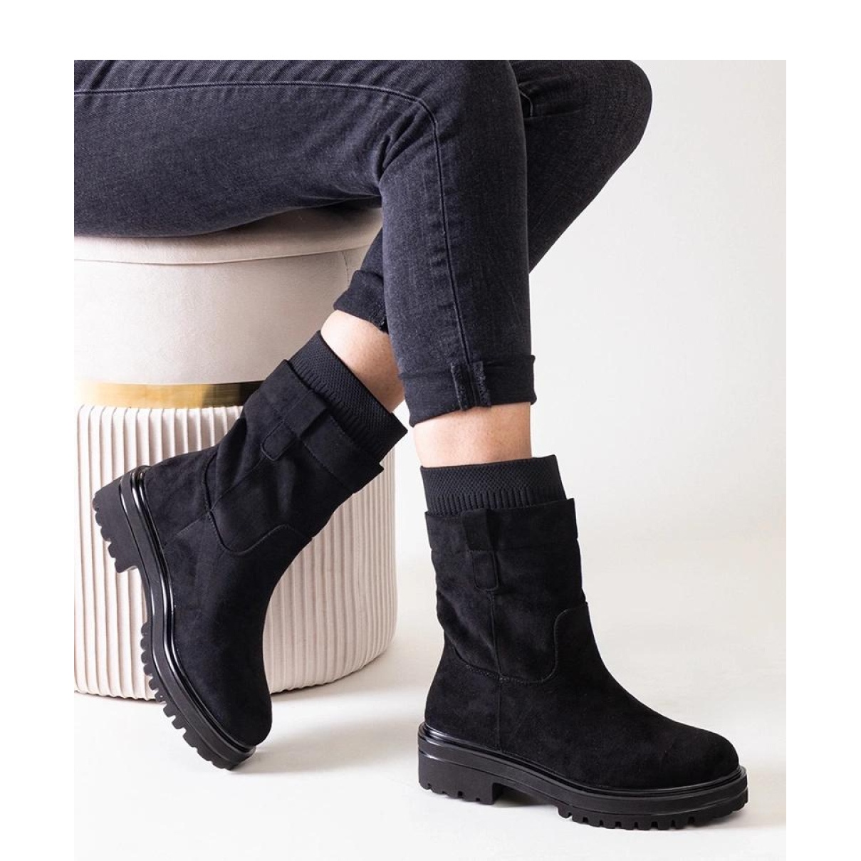Inna marka Schwarze Slip-On-Stiefeletten mit Socke