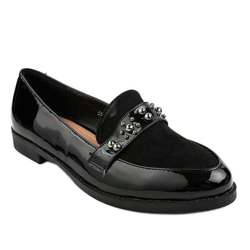Schwarze Slipper mit Nieten JN-27 sind eine ideale Wahl für Frauen, die Wert auf modisches Aussehen und Komfort legen. Aus hochwertigem lederähnlichem Material gefertigt, passen diese eleganten Schuhe perfekt zu vielen Frühlings- und Sommer-Styles.
