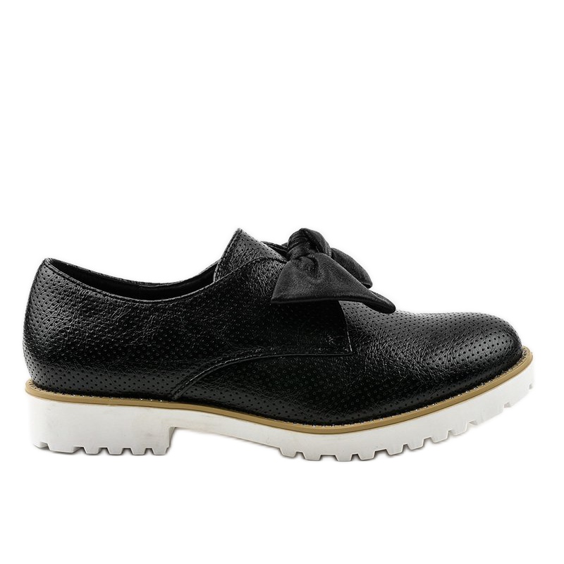Schwarze Slip-On-Schuhe mit Schleife RS-WED2 sind eine ideale Wahl für Frauen, die Wert auf Eleganz gepaart mit Komfort legen. Aus hochwertigem lederähnlichem Material gefertigt, sehen diese Schuhe stilvoll und modern aus. Ihr charakteristisches Element ist eine dekorative Schleife, die femininen Charme verleiht.