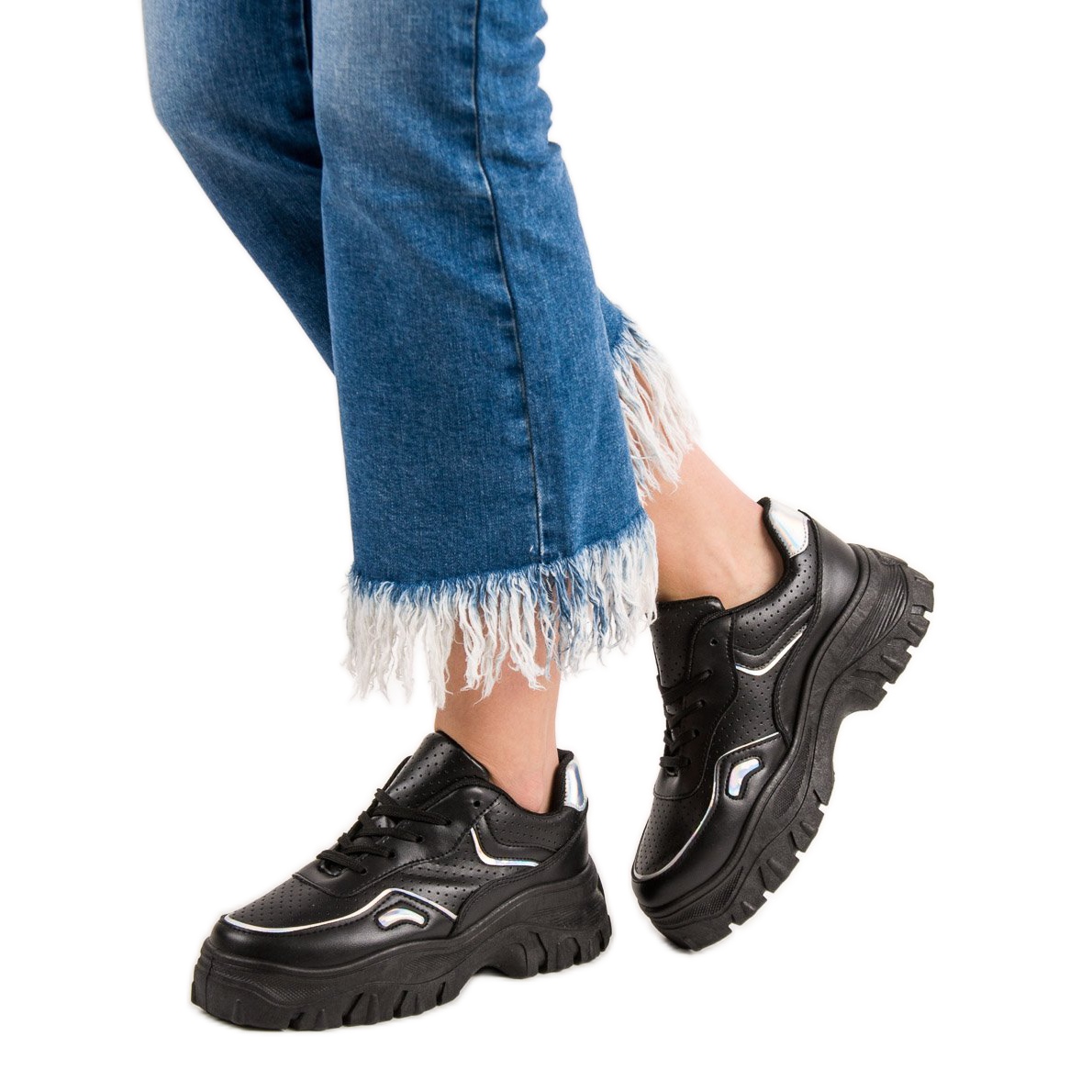 Entdecken Sie einzigartigen Stil und Komfort mit den schwarzen SHELOVET Damen-Sneakern mit auffälligen holografischen Akzenten. Diese originellen Schuhe werden Ihre Alltagsgarderobe perfekt bereichern und ihr einen modernistischen Charakter verleihen.