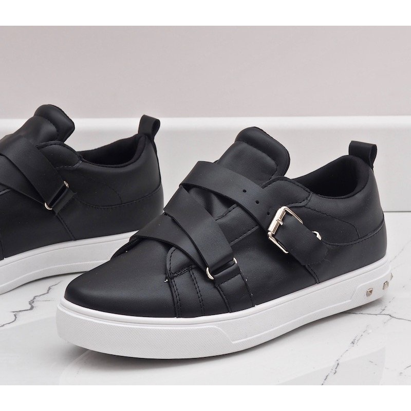 Durch ihr niedriges Design und die 2 cm hohe Plateausohle sind sie den ganzen Tag über angenehm zu tragen. Darüber hinaus sind die Sneaker mit großen, dekorativen Schnallen und Strasssteinen verziert, was ihnen einen einzigartigen Charakter verleiht und sie aus der Masse hervorstechen lässt.