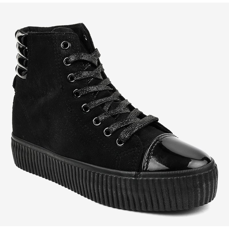 Das Modell TL-53 passt perfekt zu aktuellen Trends und ermöglicht Ihnen gleichzeitig das freie Experimentieren mit Ihrem eigenen Stil. Durch die Höhe der Schuhe von bis zu 15 cm betonen sie die Figur perfekt und der flache Absatz sorgt für Komfort bei jedem Schritt. Die Sneaker sind im eleganten Schwarz erhältlich und passen dadurch zu vielen Styles – von lässig bis etwas eleganter.