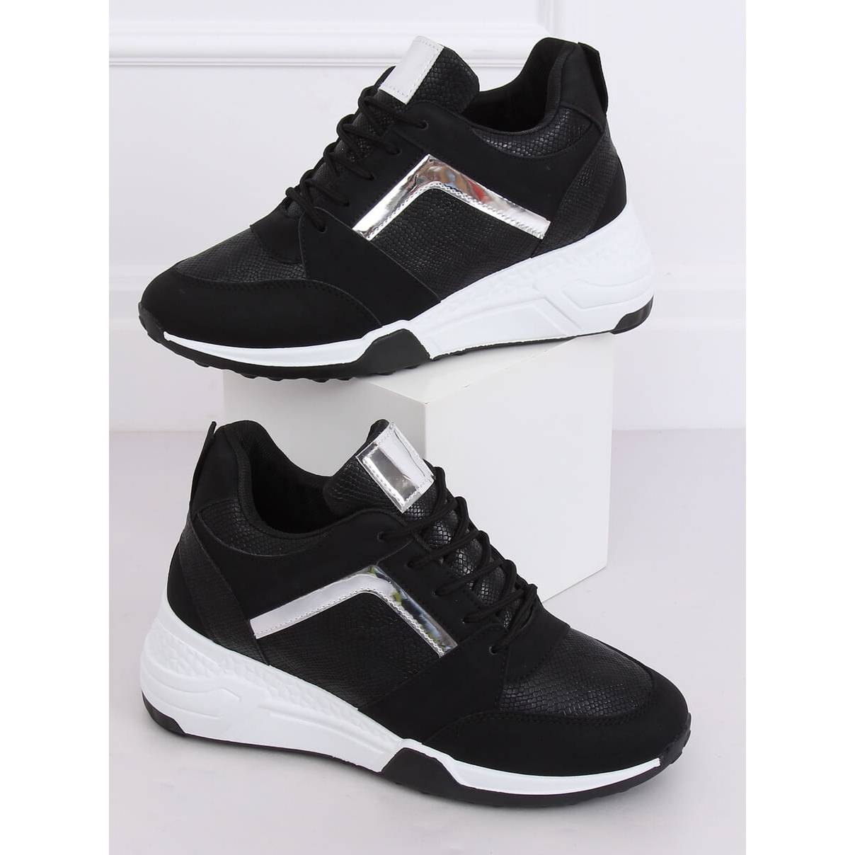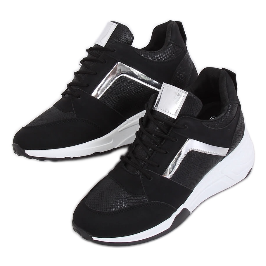Details: Schwarze Sneakers mit Keilabsatz YL-33 Schwarz gelb