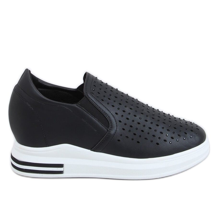 Details: Schwarze Sneakers zum Hineinschlüpfen mit Keilabsatz HY-251 Black