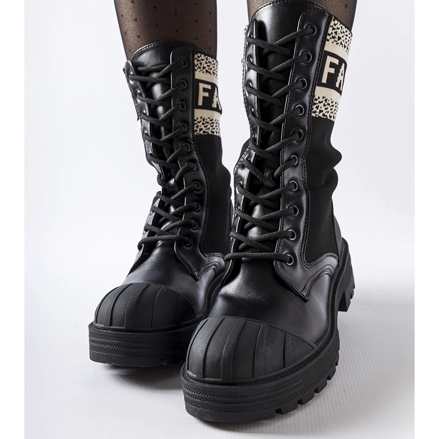 Elegante, minimalistische Frauensocken mit einer weißen Inschrift "Daria". Das Modell mit einer Höhe (28 cm) kombiniert einen modernen, benachbarten Schnitt mit dem Komfort einer flachen Ferse (4,5 cm). Der äußere Teil besteht aus ökologischem Leder, einer schwarzen Gummi -Sohle und einem Stoffeinsatz sorgt für den Komfort, während der gesamten Saison vom Herbst bis zum Frühling zu tragen. Der Verschluss an den Schnürsenkel und die runde Nase ergänzt die klassische, universelle Form.
