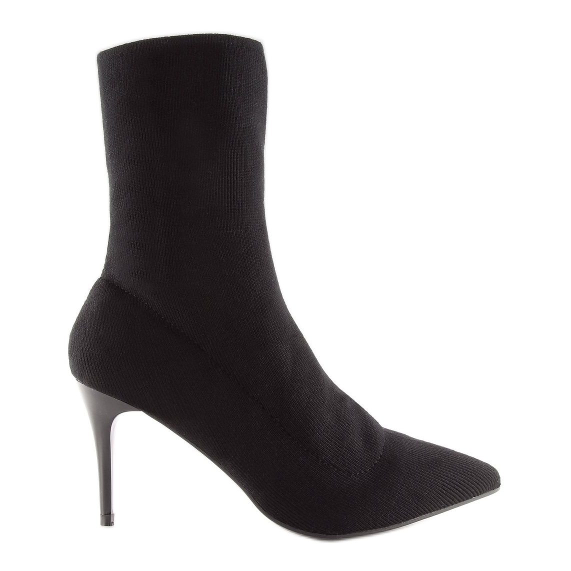 Details: Schwarze Sockenstiefel auf einem Absatz LL-103