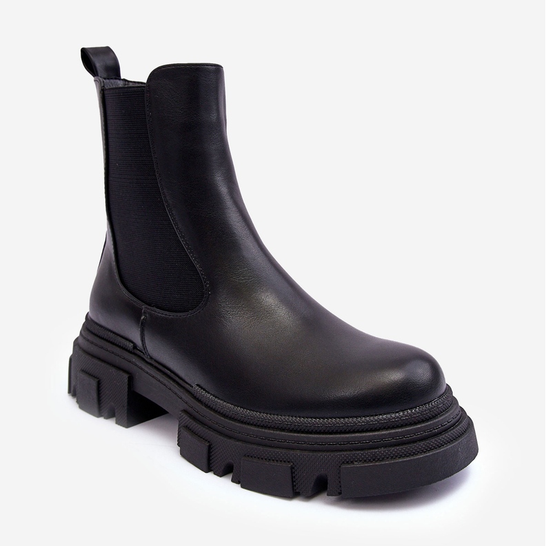 Details: PS1 Schwarze Solita-Chelsea-Stiefel aus Leder mit flachem Absatz und Plateau