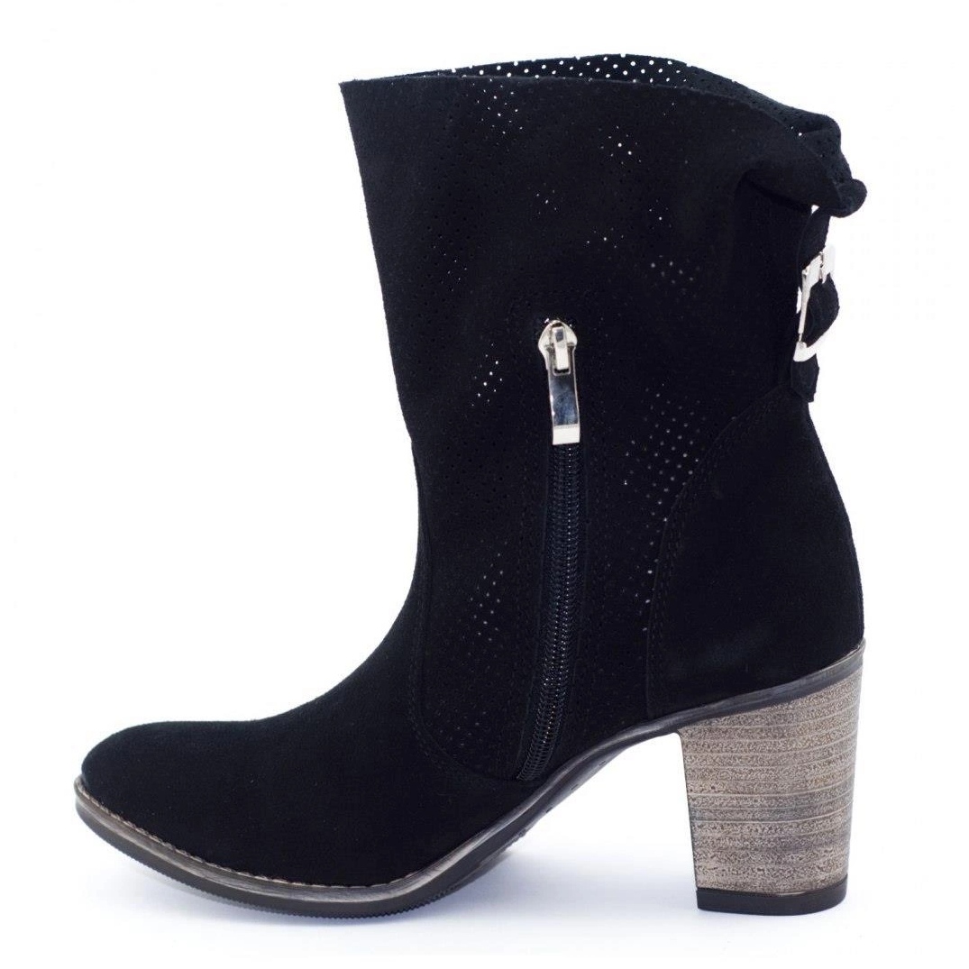 Elegante und komfortable - Olivier Sophia Boots sind ein Vorschlag für Frauen, die selbst in alltäglichen Stilisierungen einen modischen Look schätzen. Subtile Openwork -Ausschnitte, die aus einem natürlichen Nubuck mit einer zarten, matten Textur bestehen, verleihen Leichtigkeit und Stil. Der Obere erreicht den Knöchel, und das Schloss an der Seite erleichtert das Abziehen und Abfahren.