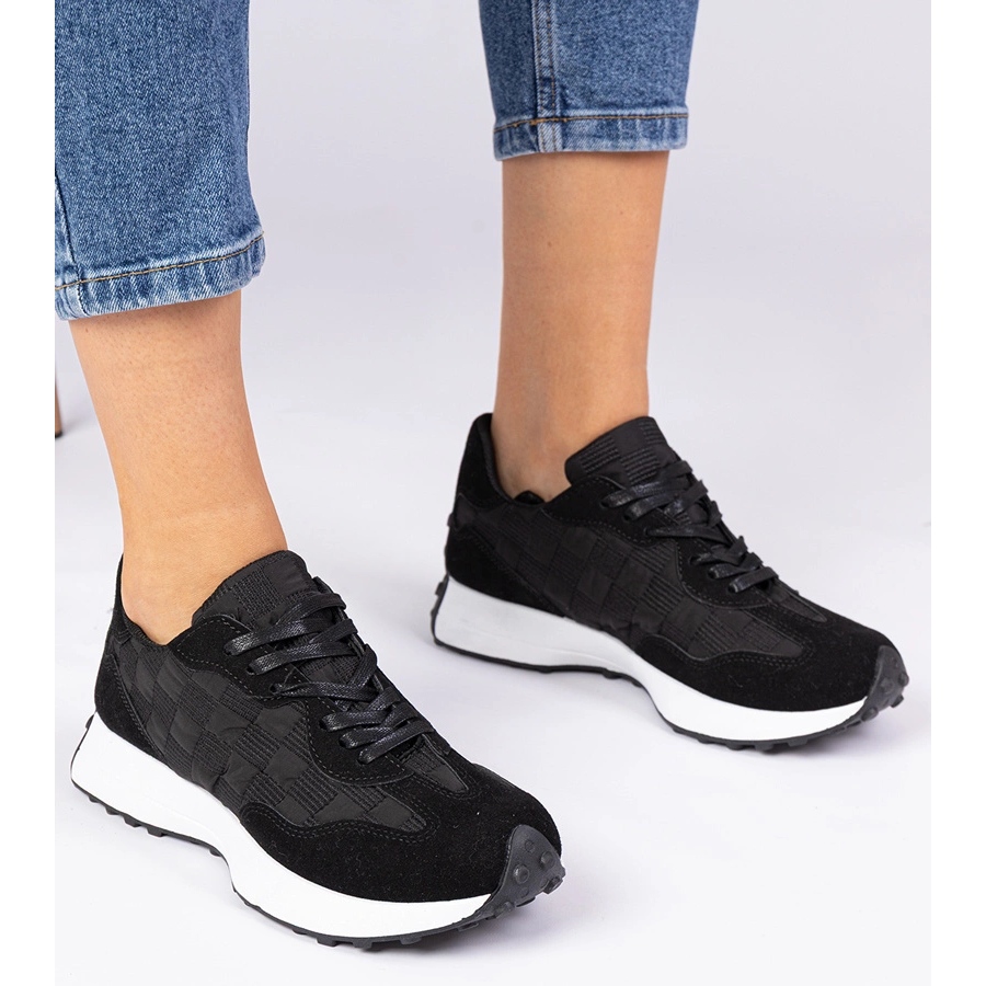 Sneakers N-203 aus hochwertigem Stoff werden durch eine runde Nase unterschieden, die den Nutzungskomfort sicherstellt, und eine solide 3,5-cm-Plattform, die bei jedem Schritt Stabilität garantiert. Klassische schwarze Farben machen diese Schuhe extrem universell - sie mischen sich perfekt mit Casual- und Sportstilisationen.