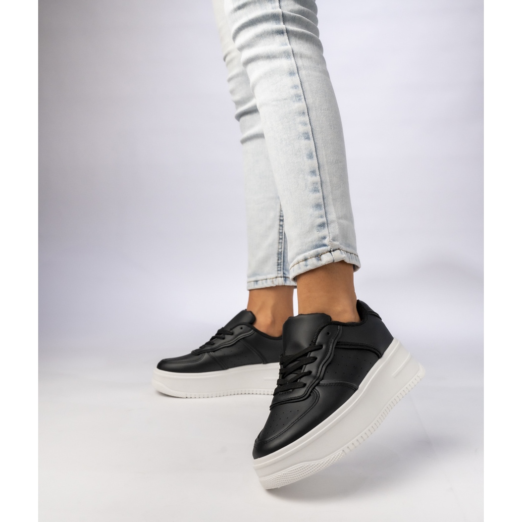 Entdecken Sie moderne Sneaker für Frauensportarten in klassischem Schwarz, das Ihre Garderobe perfekt ergänzt. Diese stilvollen Schuhe aus hochwertigem Öko -Leder kombinieren Komfort mit modischem Design und passen perfekt zu aktuellen städtischen Trends. Die kontrastierende weiße Plattform verleiht ihnen nicht nur Charakter, sondern bietet bei jedem Schritt auch Stabilität und Komfort.