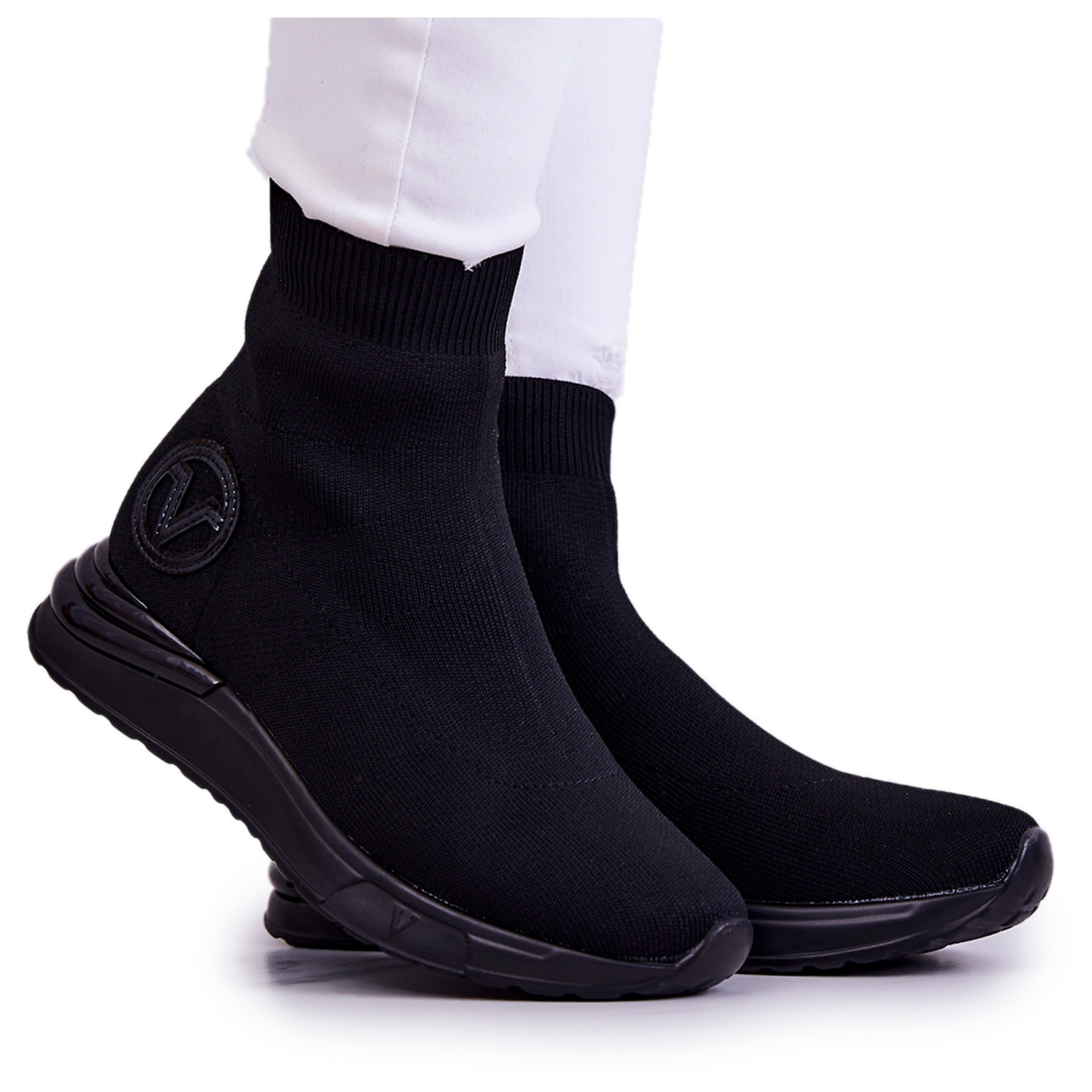 Wir präsentieren Vinceza Sportsockenschuhe für Damen in Schwarz, Modell Runaway. Diese modernen Schuhe vereinen Stil und Komfort und eignen sich perfekt für alltägliche Aktivitäten und sportliche Herausforderungen. Ein hoher, über den Knöchel reichender Schaft mit leicht erhöhter, spitz zulaufender mandelförmiger Spitze garantiert perfekten Sitz und Halt für den Fuß.