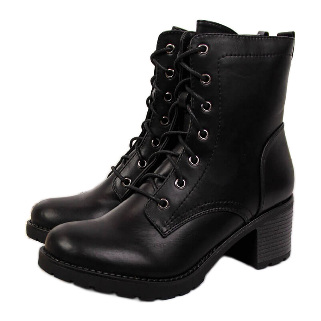 Mit einem Reißverschluss befestigte und geschnürte Stiefel, die das Anziehen und die Anpassung an den Fuß erleichtern. Dank der Knöchelhöhe schützen sie perfekt vor Kälte und passen durch ihre klassische schwarze Farbe zu vielen Styles – sowohl zu Jeans als auch zu Kleidern.