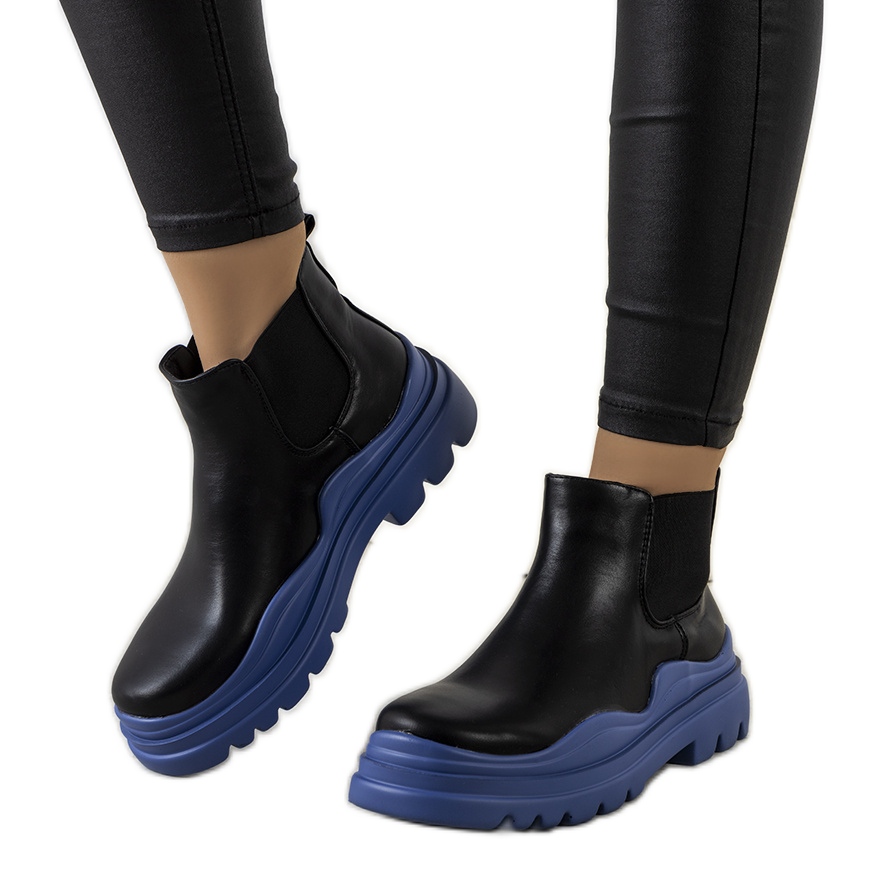 Schwarze Stiefel auf dem Blue Tausel Plattform-Model 2115-2
