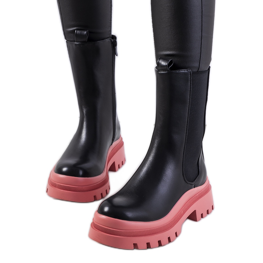 Inna marka Schwarze Stiefel auf dem pinkfarbenen Ruket-Plateau
