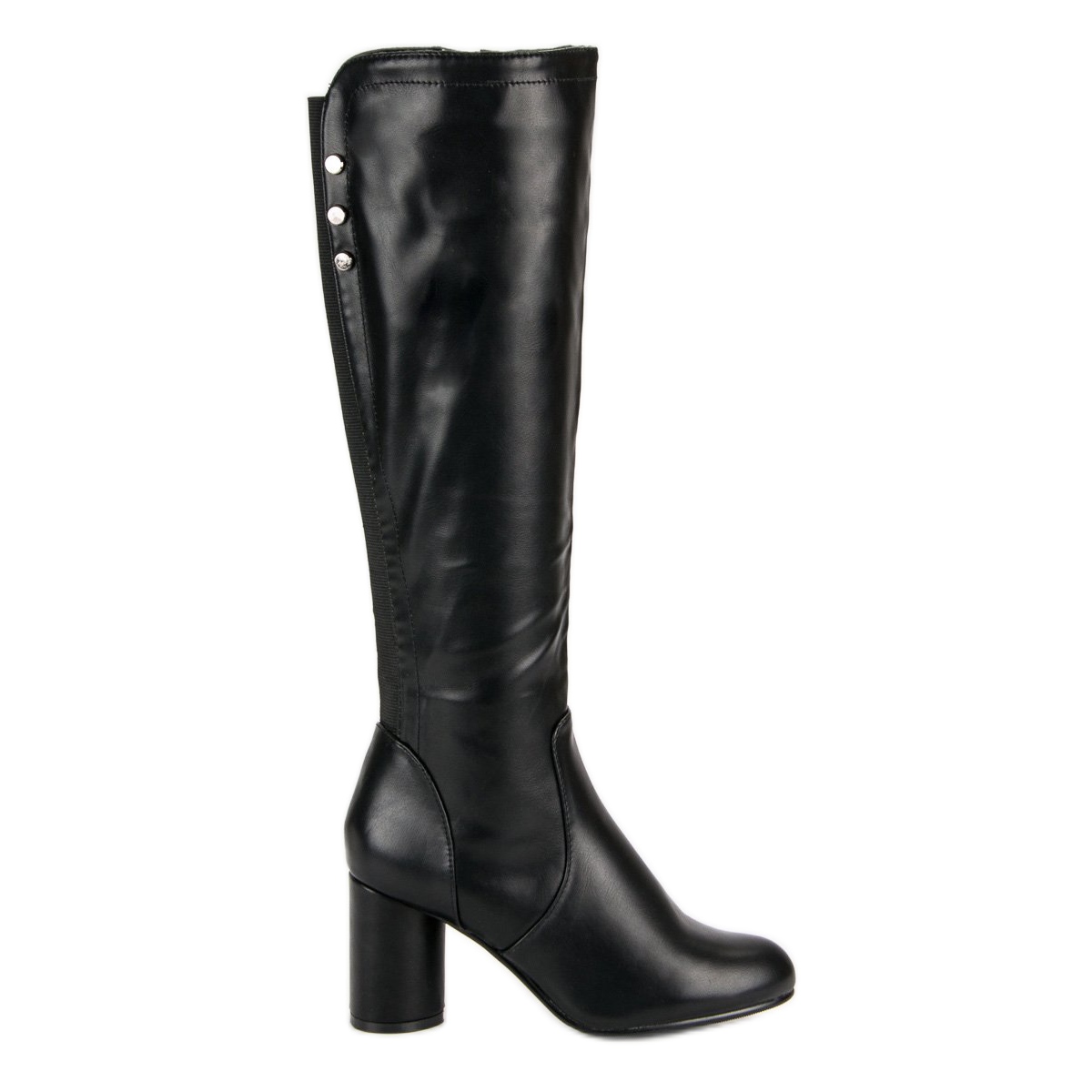 Schwarze Stiefel mit hohen Absätzen sind die perfekte Kombination aus Eleganz und Komfort und werden mit Sicherheit zum Lieblingselement der Garderobe jeder Frau. Diese aus hochwertigem Kunstleder gefertigten Schuhe sind nicht nur stilvoll, sondern auch umweltfreundlich. Durch das klassische Schwarz passen sie zu vielen verschiedenen Stilen, sowohl für den Alltag als auch für formelle Anlässe.