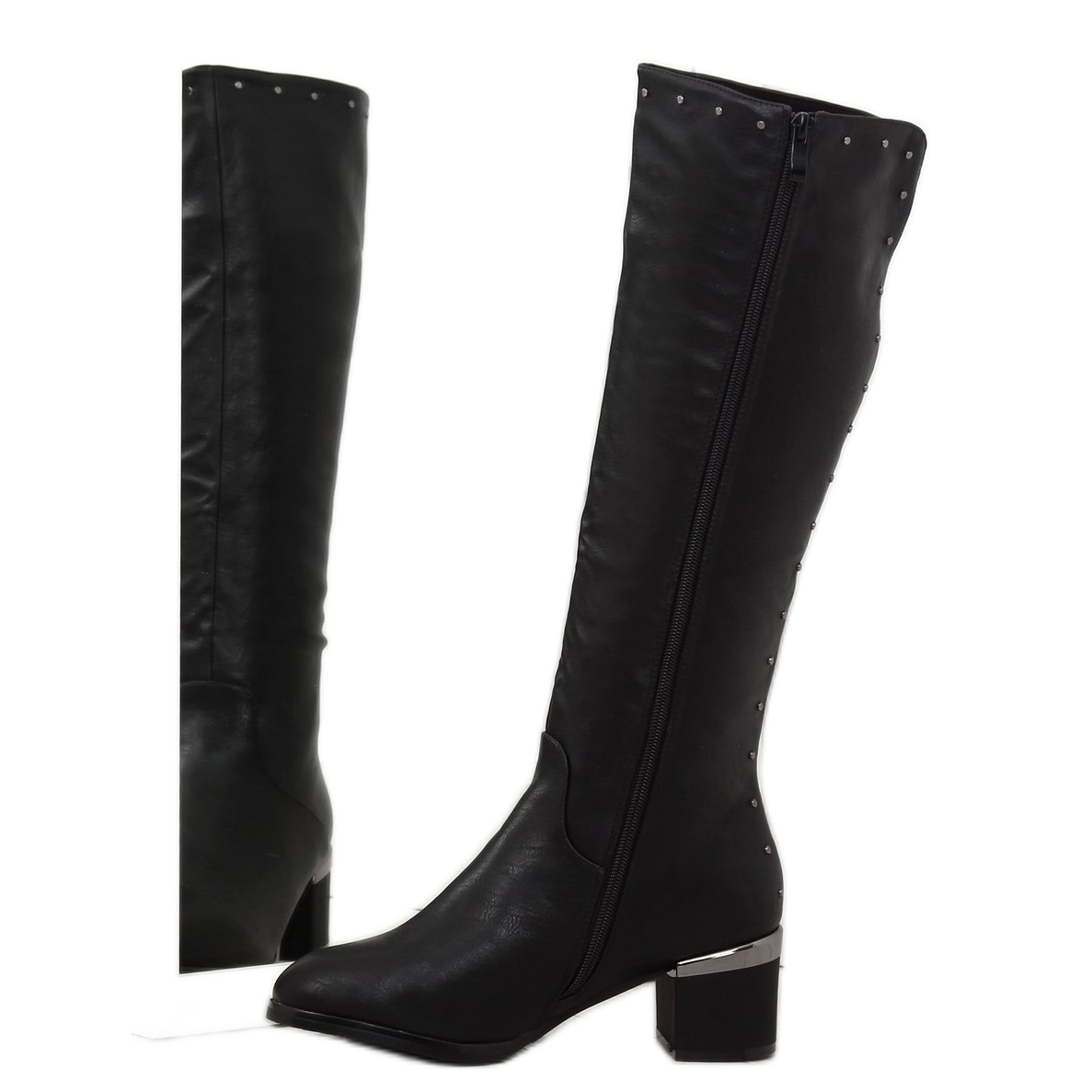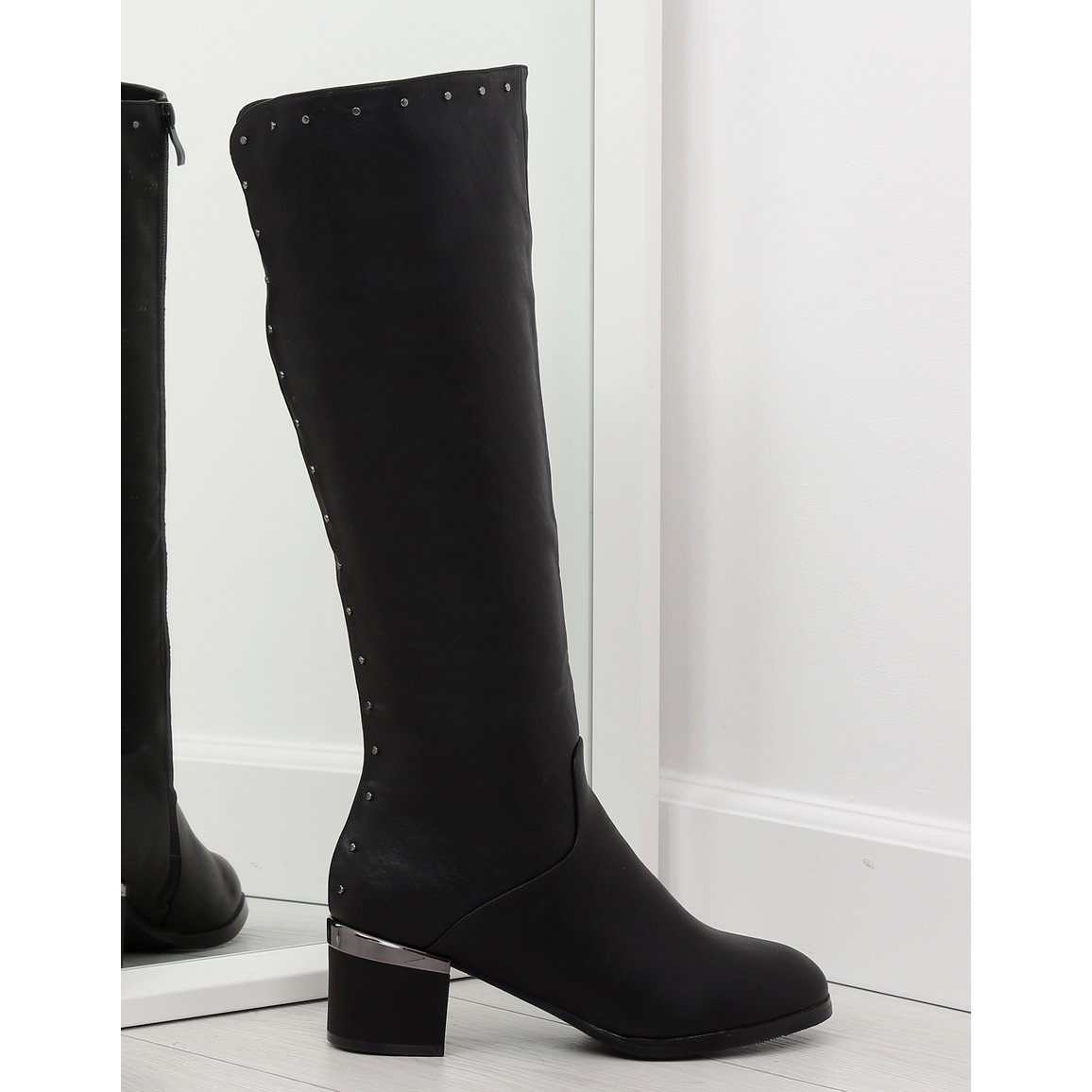 Inna marka Schwarze Stiefel auf einem bequemen Absatz SG-199 Black