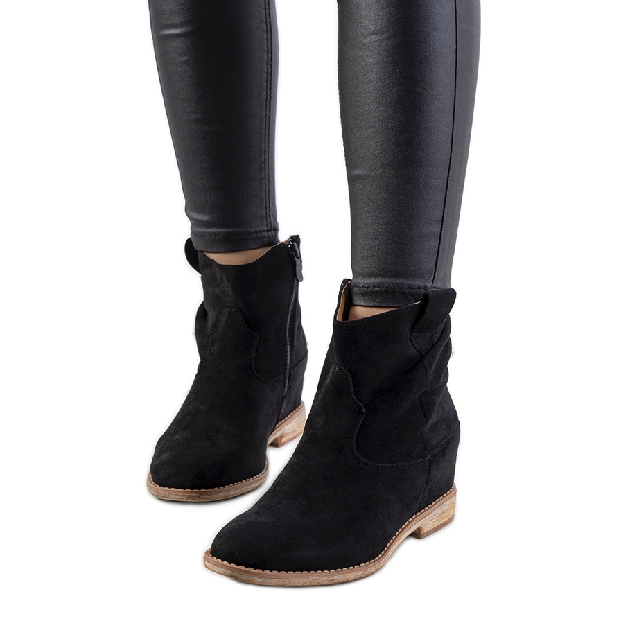 Details: Schwarze Stiefel auf einem Indoor-Keilabsatz von Hunjet