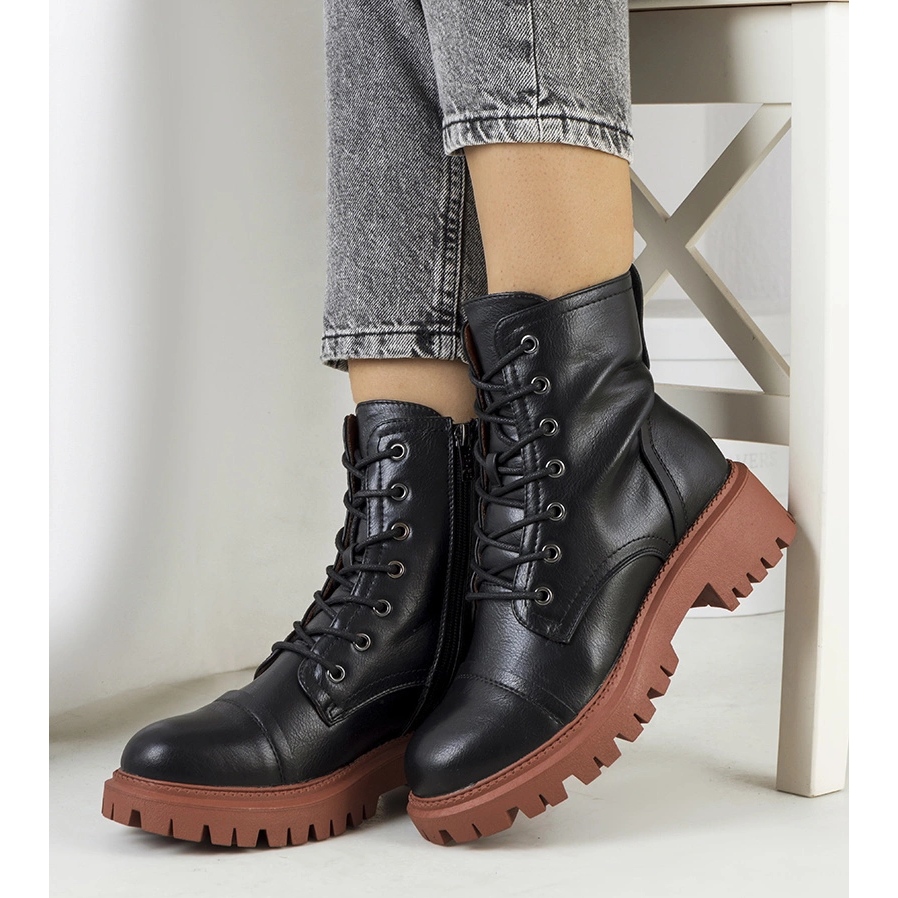 Inna marka Schwarze Stiefel auf einer braunen Rukit-Sohle