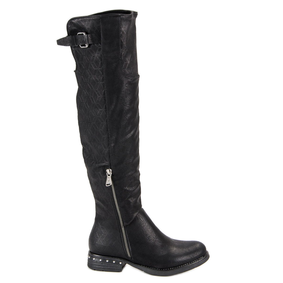 SDS SDS Schwarze Stiefel auf flachen Absätzen