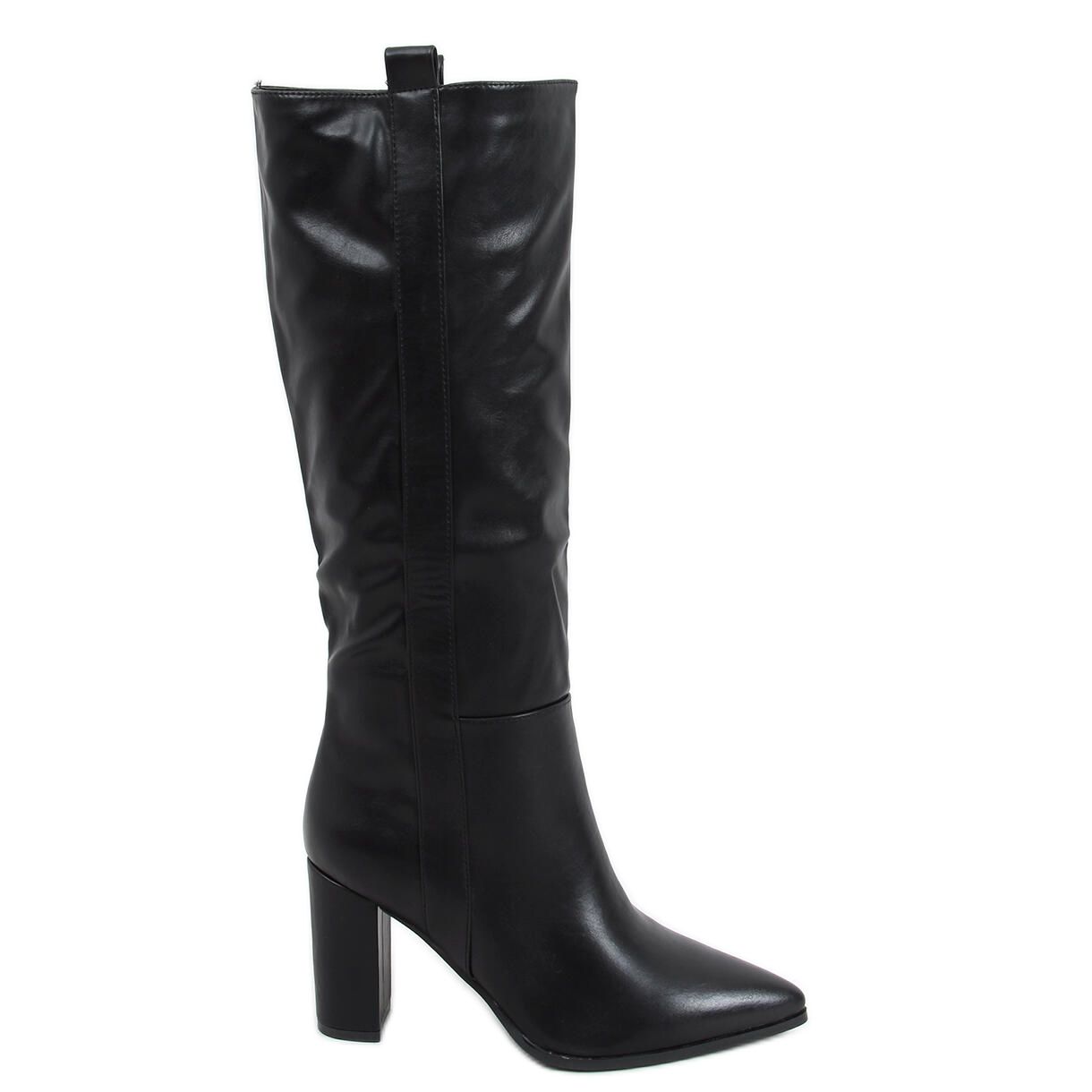 Inna marka Schwarze Stiefel auf stabilem Absatz RB49P Black