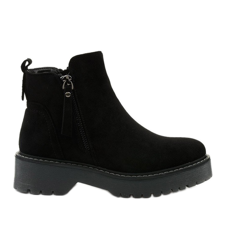 Die schwarzen Stiefeletten Elinvyra sind ein unersetzlicher Bestandteil der Damengarderobe und vereinen klassischen und modernen Stil. Aus ökologischem Wildleder gefertigt, begeistern diese eleganten Schuhe durch ihre Schlichtheit und Funktionalität. Perfekt für den täglichen Gebrauch, salzig und bequem, bieten sie eine hervorragende Isolierung und sind somit eine gute Wahl für kältere Tage.