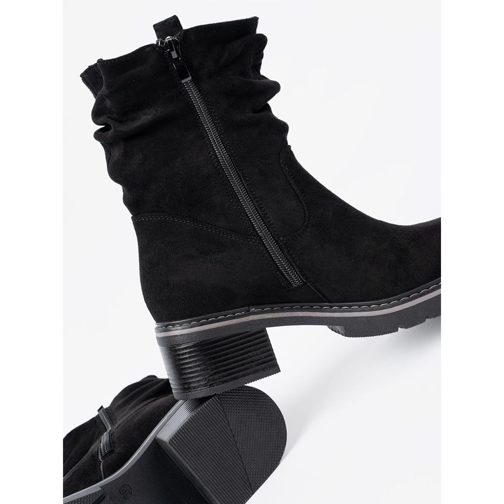 Details: Shelvt Schwarze Stiefel der Frauen mit dekorativem Stirnrunzeln
