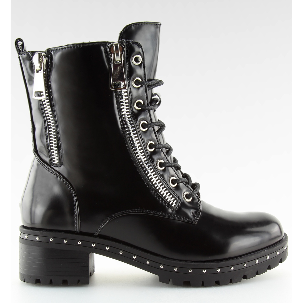 Die schwarzen Bovver-Stiefel A-40 für Damen sind die perfekte Wahl für Frauen, die ihrer Garderobe etwas Rock-Stil verleihen möchten. Komplett aus hochwertigem Faux-Wildleder gefertigt, zeichnen sich diese Stiefeletten durch ein auffälliges Lackfinish aus. Auffällige Nieten entlang der Sohle und dekorative silberne Reißverschlüsse sind Details, die ihnen Charakter verleihen und sie aus der Menge hervorstechen lassen.