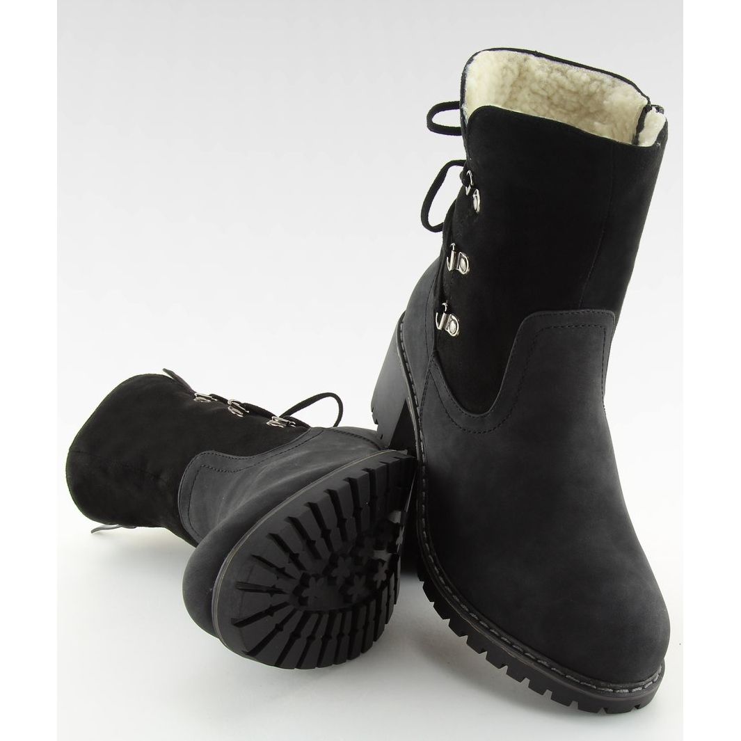 Inna marka Schwarze Stiefel isoliert mit Lamm schwarz NC726 Black