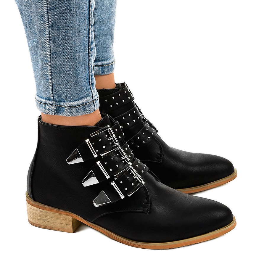 Schwarze Stiefeletten mit Schnalle A-263 sind die perfekte Wahl für Frauen, die Wert auf Stil, Komfort und Zweckmäßigkeit legen. Gönnen Sie sich etwas und vervollständigen Sie Ihre Schuhkollektion mit diesem modischen Modell!