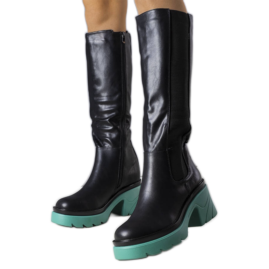 Inna marka Schwarze Stiefel mit blauer Sohle von Charla