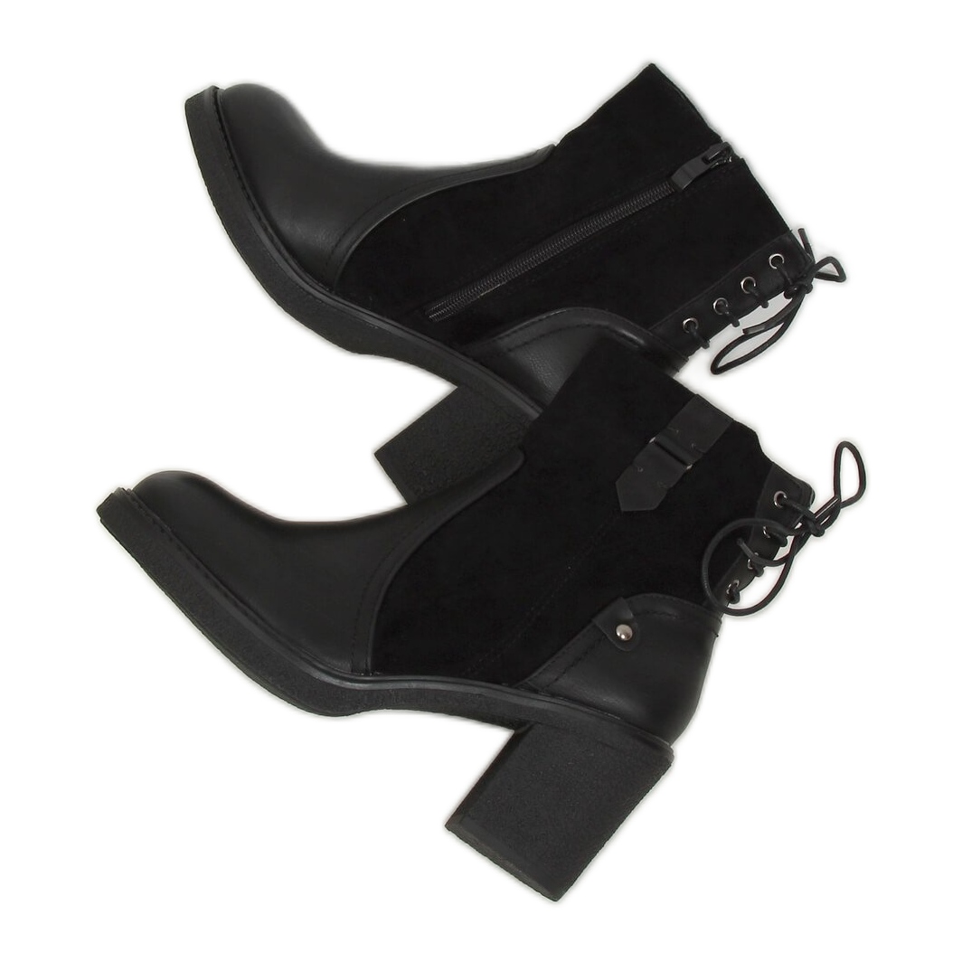 Entdecken Sie außergewöhnlichen Stil und Komfort dank der schwarzen Stiefeletten H8116 mit weitem Absatz! Diese einzigartigen Damen-Stiefeletten vereinen Eleganz und modernes Design und passen perfekt zu den neuesten Trends. Sie sind aus hochwertigem Faux-Wildleder und Öko-Wildleder in klassischem Schwarz gefertigt und passen zu jedem Alltags-Styling.