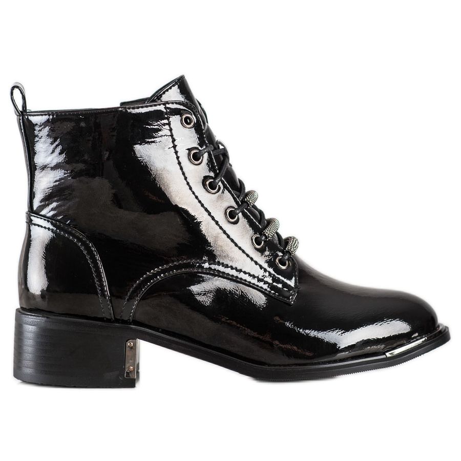 Die Stiefel werden mit einem Reißverschluss geschlossen, was das An- und Ausziehen erleichtert, und eine zusätzliche Schnürung ermöglicht eine bessere Anpassung an den Fuß. Die lackierte Oberfläche verleiht ihnen einen einzigartigen Glanz und macht sie zur perfekten Ergänzung für jedes Styling.