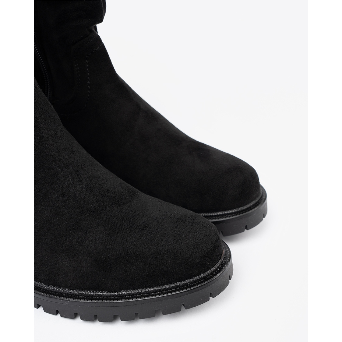 Entdecken Sie ein elegantes und modisches Angebot für die Herbst-Winter-Saison mit Shelvt-Stiefeln. Diese schwarzen Stiefel mit einem zerknitterten Obermaterial sind die perfekte Wahl für Frauen, die sowohl Stil als auch Komfort schätzen. Sie bestehen aus hochwertigem Wildleder im Nachahmung und sehen äußerst beeindruckend aus und ihre klassische schwarze Farbe lässt Sie sie leicht mit einer Vielzahl von Stylisationen kombinieren.