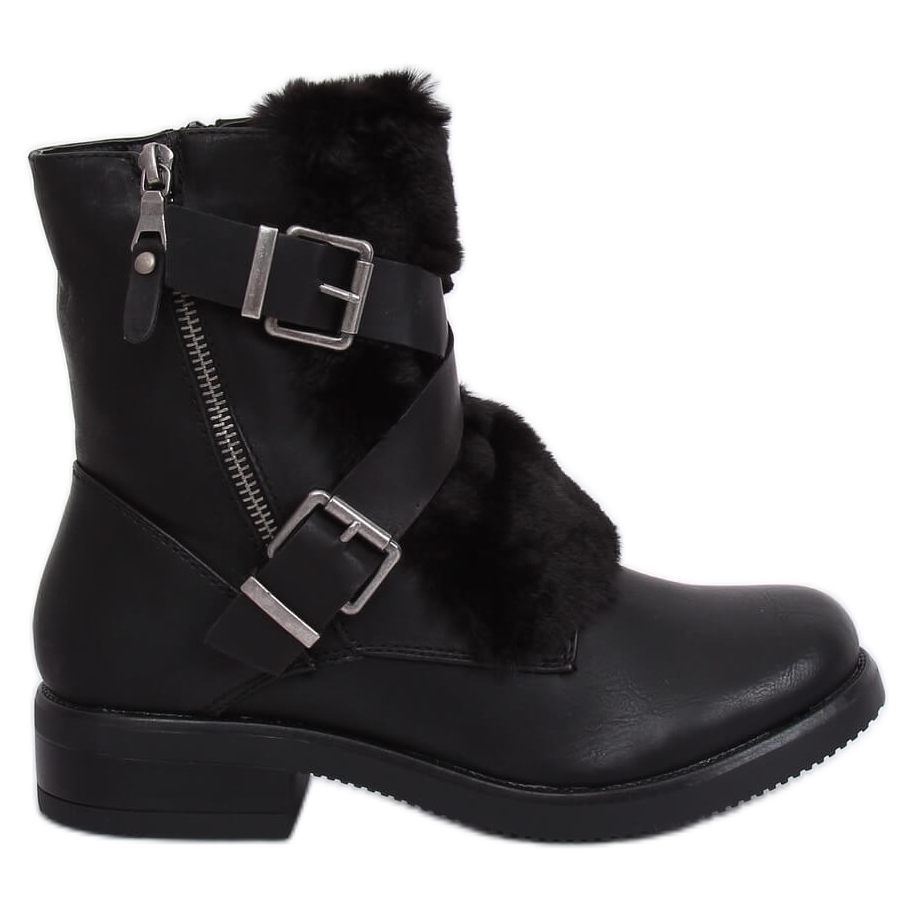 Inna marka Schwarze Stiefel mit Fell 1061A-PA Schwarz