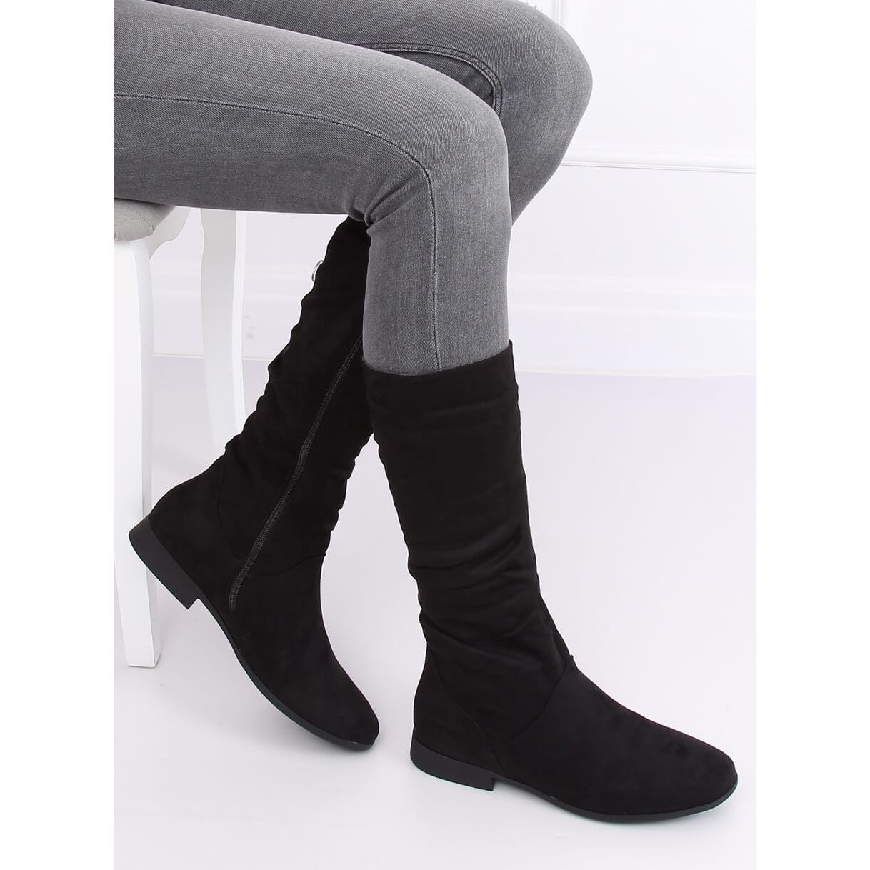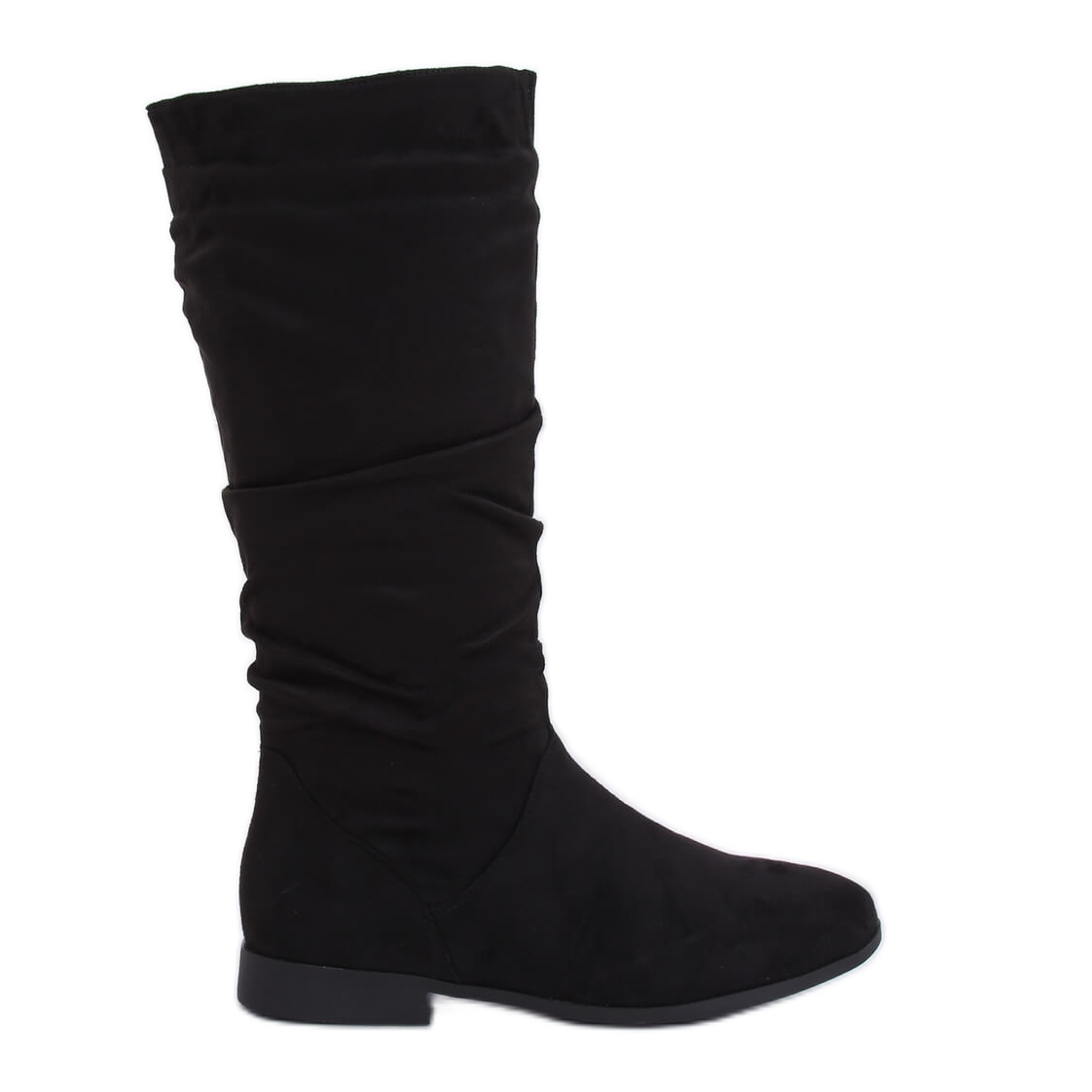 Inna marka Schwarze Stiefel mit flachem Absatz M629 Schwarz