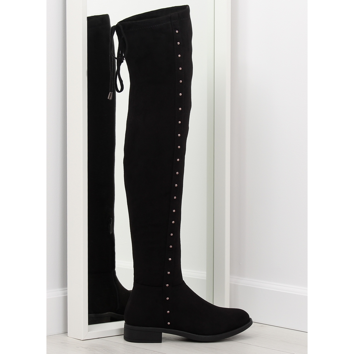 Inna marka Schwarze Stiefel mit flachen Absätzen 7368