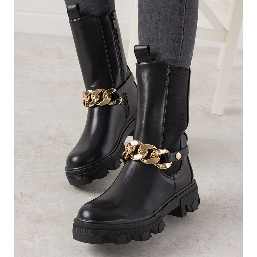 Inna marka Schwarze Stiefel mit goldener Kette von Luce