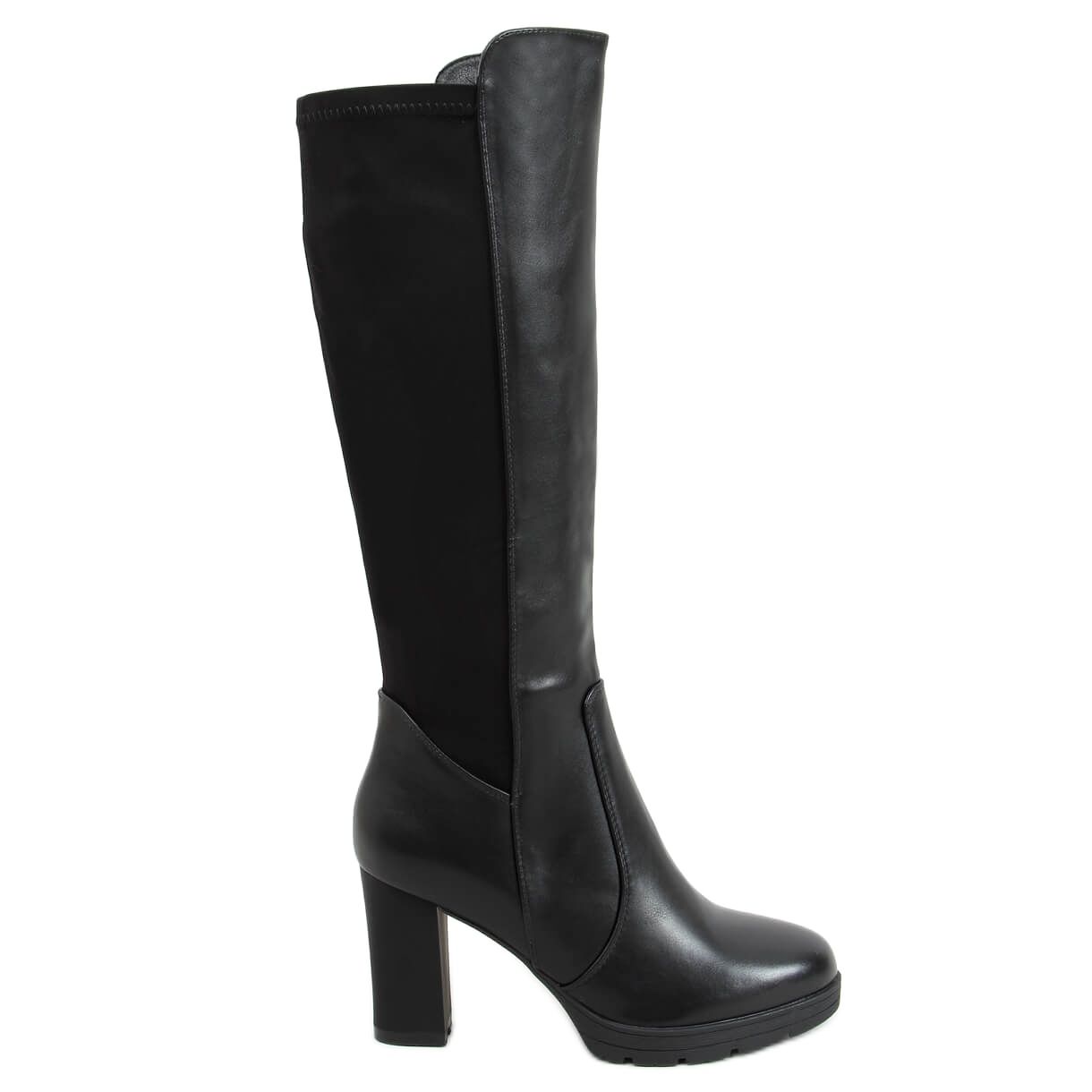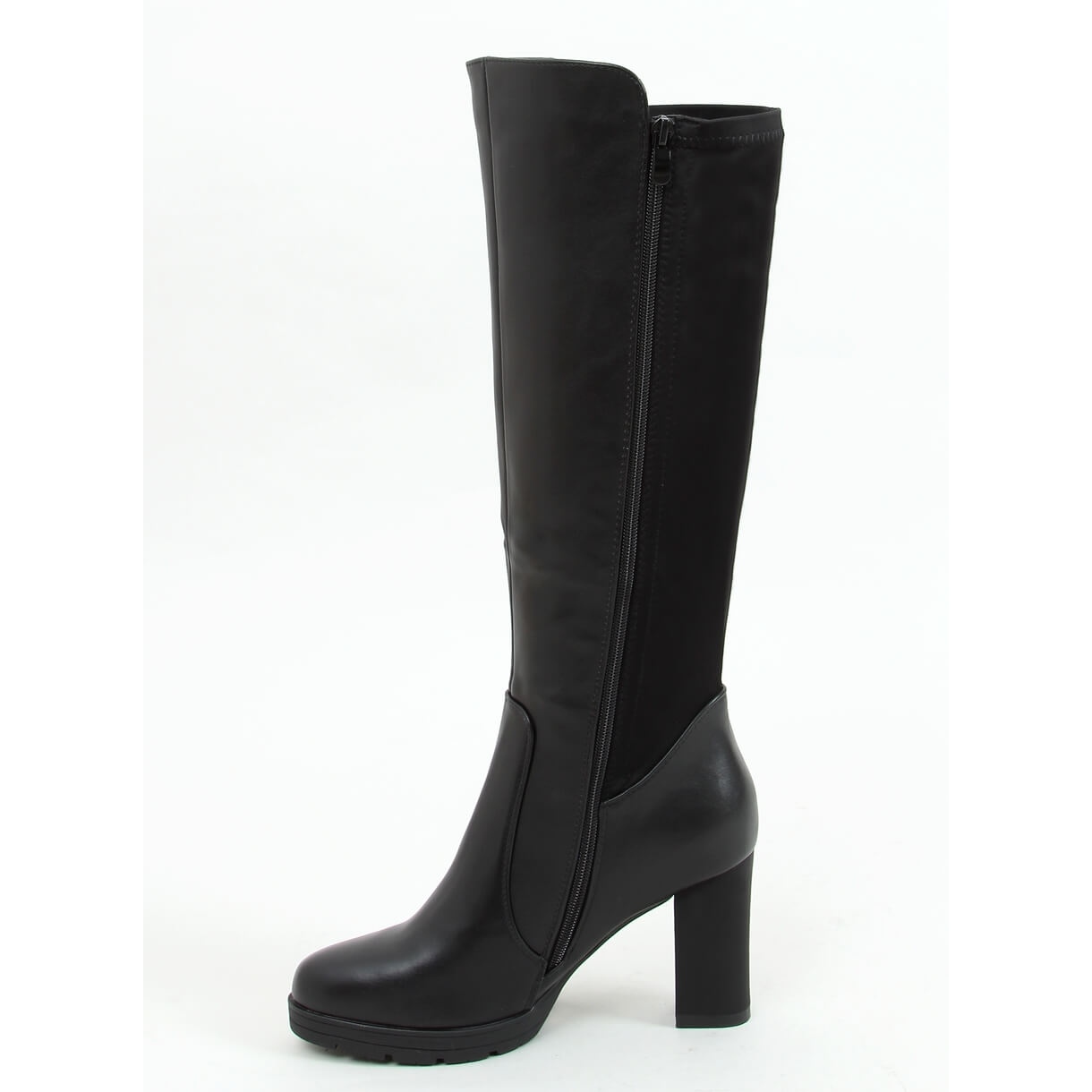 Details: Schwarze Stiefel mit hohem Absatz und flexiblem Obermaterial Y8607 Black