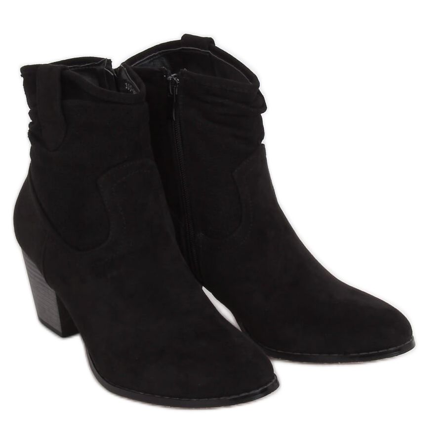Entdecken Sie außergewöhnlichen Stil und Komfort mit den schwarzen Stiefeletten 100-987B0-2 Black mit hohen Absätzen! Diese Damen-Stiefeletten aus Wildleder sind ein Must-Have in Ihrer Garderobe und werden mit Sicherheit alle Blicke auf sich ziehen. Mit einer Absatzhöhe von 6,5 cm sorgt ihr stabiler Block für Komfort beim ganztägigen Tragen und der modische Schnitt der Cowboystiefel passt perfekt zu aktuellen Trends.