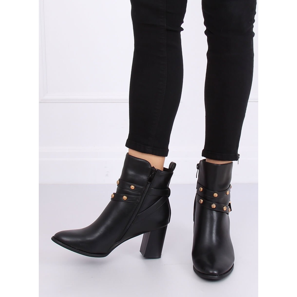 Mit goldenen Nieten verzierte Streifen umschließen zart das Obermaterial und verleihen den Schuhen einen einzigartigen Charakter. Der Reißverschluss erleichtert das Anziehen und macht sie zu einer praktischen Wahl für den täglichen Gebrauch. Die aus ökologischem Leder gefertigten Stiefel sehen nicht nur toll aus, sondern sind auch umweltfreundlich.