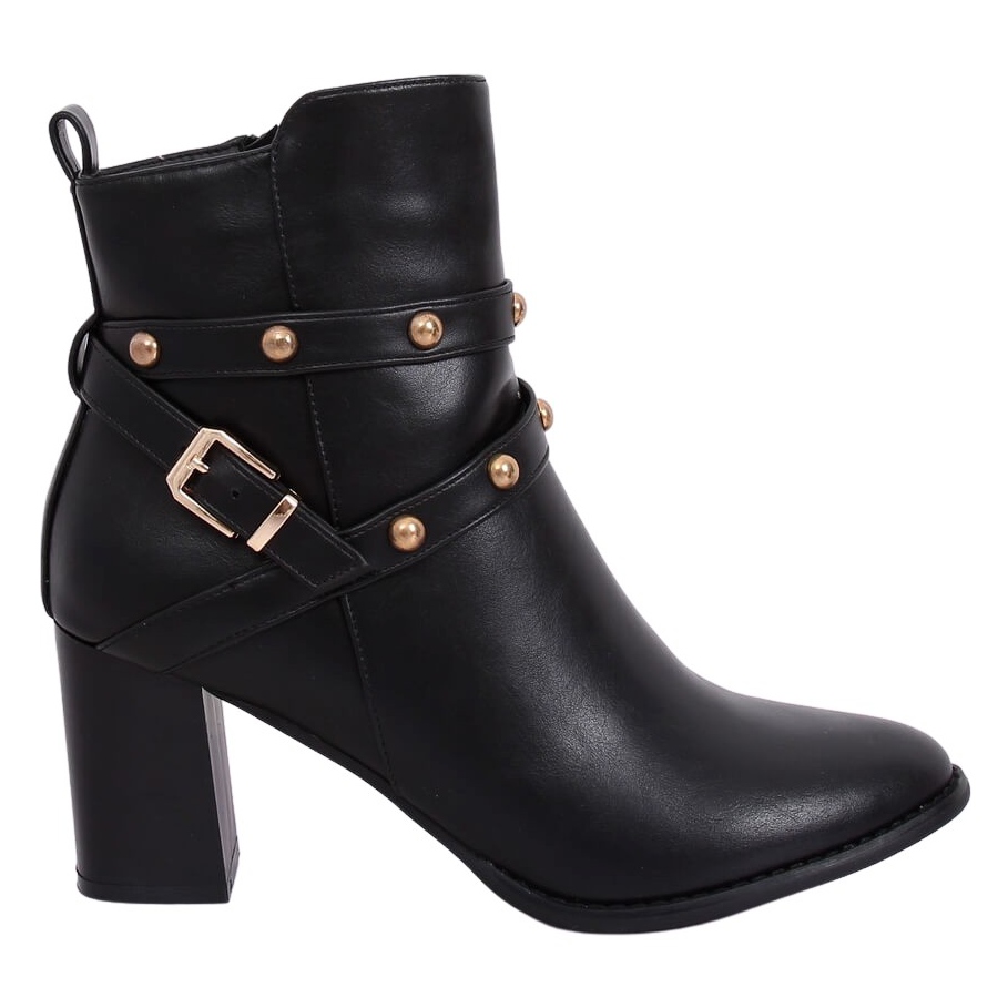 Entdecken Sie Eleganz und Komfort in einem! Schwarze Stiefeletten mit hohem Absatz 7968-GA Black sind die perfekte Wahl für eine moderne Frau, die Stil mit Komfort verbinden möchte. Diese formschönen Stiefel mit stabilem 7,5 cm-Absatz begeistern durch ihren klassischen Schnitt, der mit originellen Details angereichert wurde. Mit goldenen Nieten verzierte Streifen verleihen dem Obermaterial einen einzigartigen Charakter und durch die universelle schwarze Farbe passen sie zu jedem Stil, von lässig bis elegant.