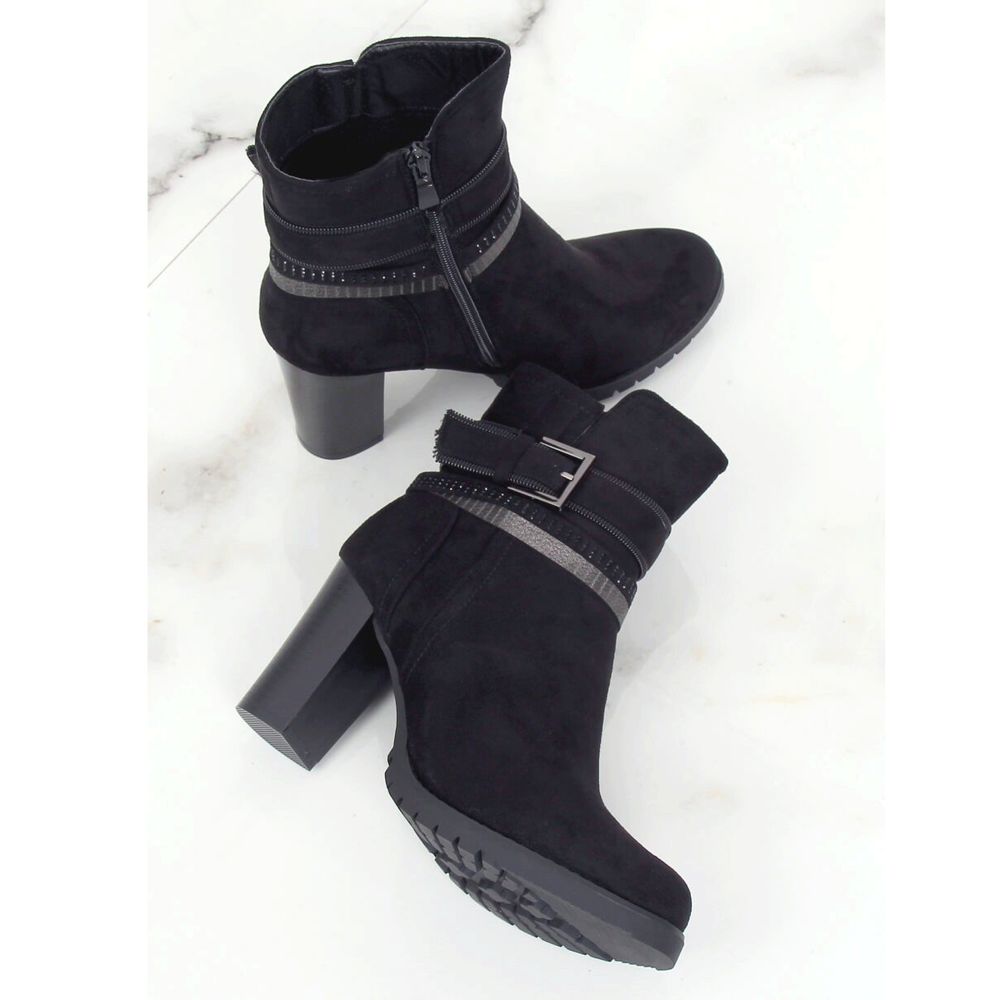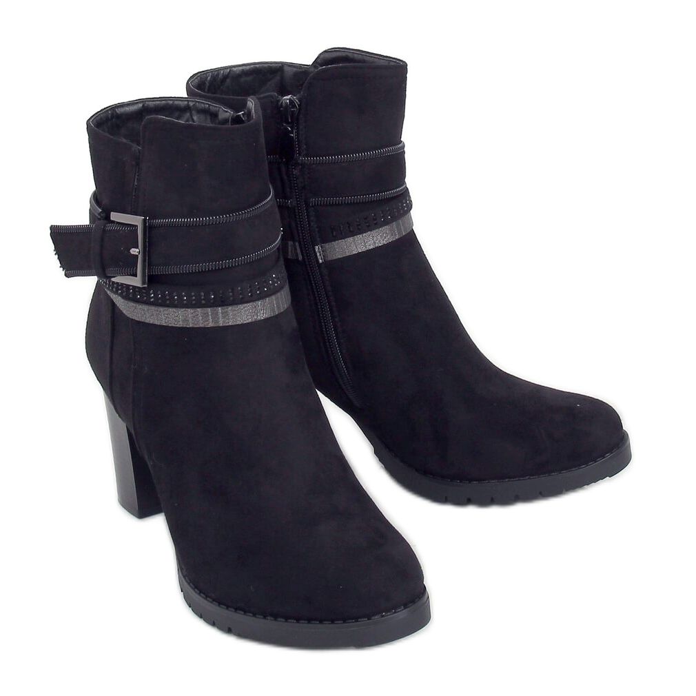 Die schwarzen Stiefeletten BH126-KB Black mit hohen Absätzen sind die perfekte Wahl für jede Frau, die Eleganz mit Komfort verbinden möchte. Diese stilvollen Stiefeletten mit dezenten Strasssteinen passen perfekt zu alltäglichen und formelleren Stilen. Durch ihren schönen, schmalen 8-cm-Absatz verlängern sie optisch die Beine und betonen so die weibliche Figur.