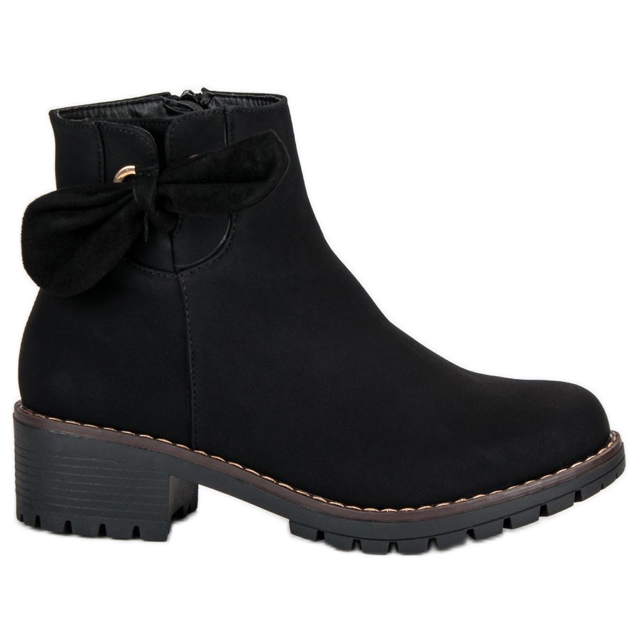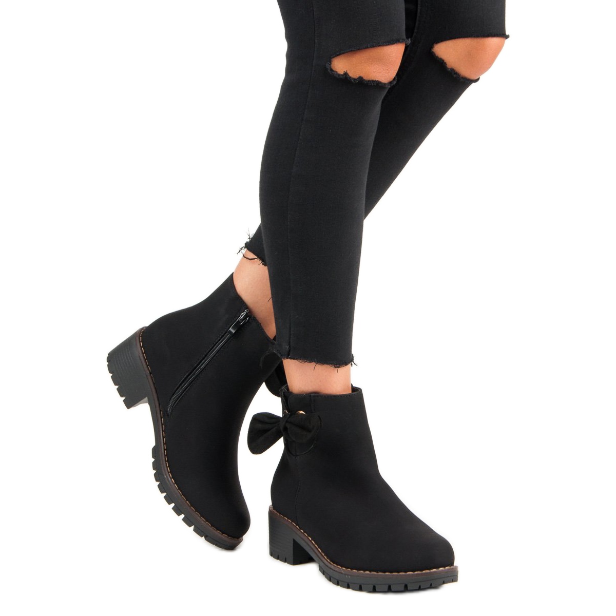 Die Stiefel zeichnen sich durch einen flachen Absatz in Form eines 4,5 cm hohen Absatzes aus, der den ganzen Tag über für Komfort sorgt. Ihr mattes Obermaterial ist dezent mit Stoffschleifen verziert, was für Stil und einen leicht rockigen Charakter sorgt. Die Isolierung durch eine Schuhdecke im Inneren des Schuhs garantiert thermischen Komfort auch an kälteren Tagen und der praktische Reißverschluss ermöglicht ein schnelles und einfaches An- und Ausziehen der Schuhe.