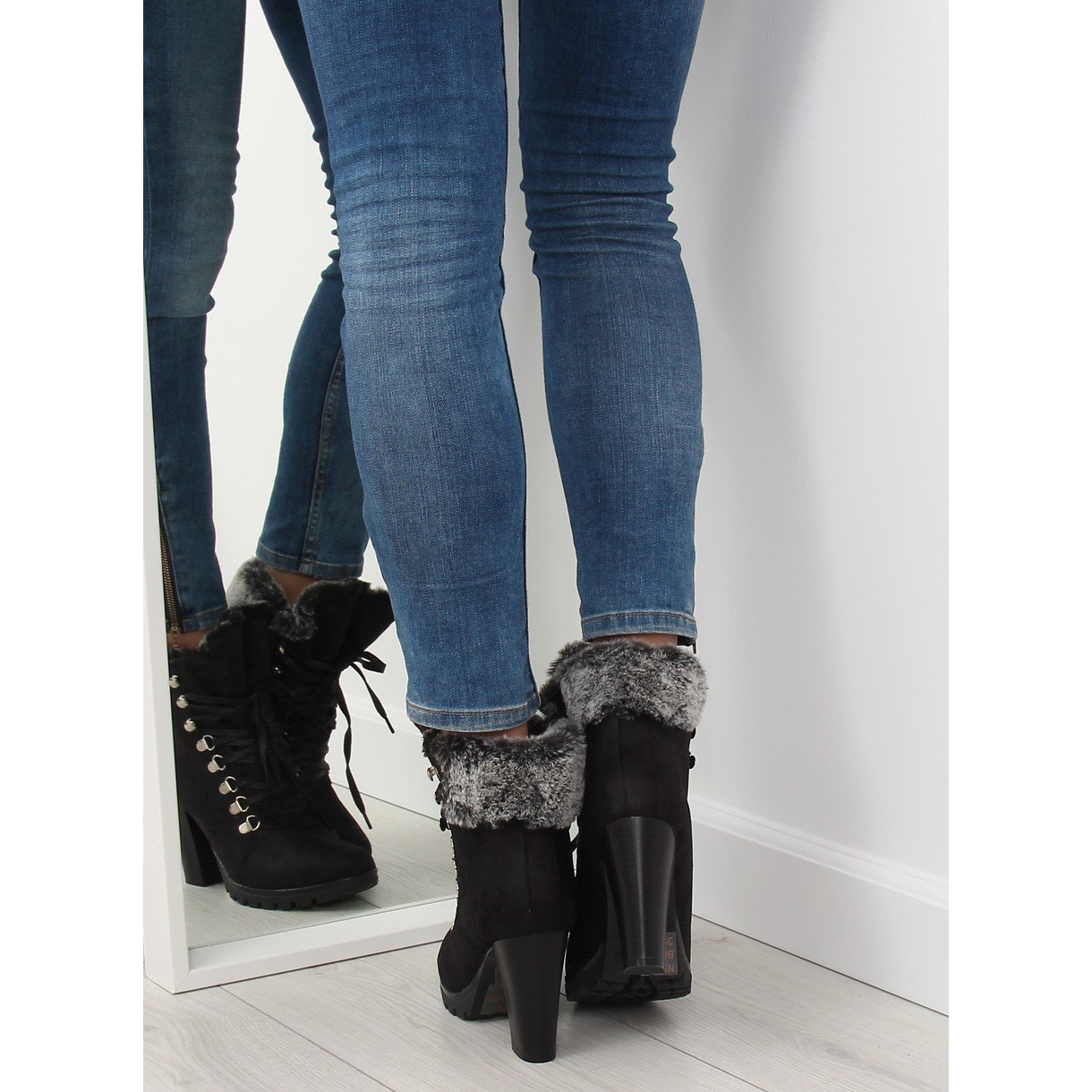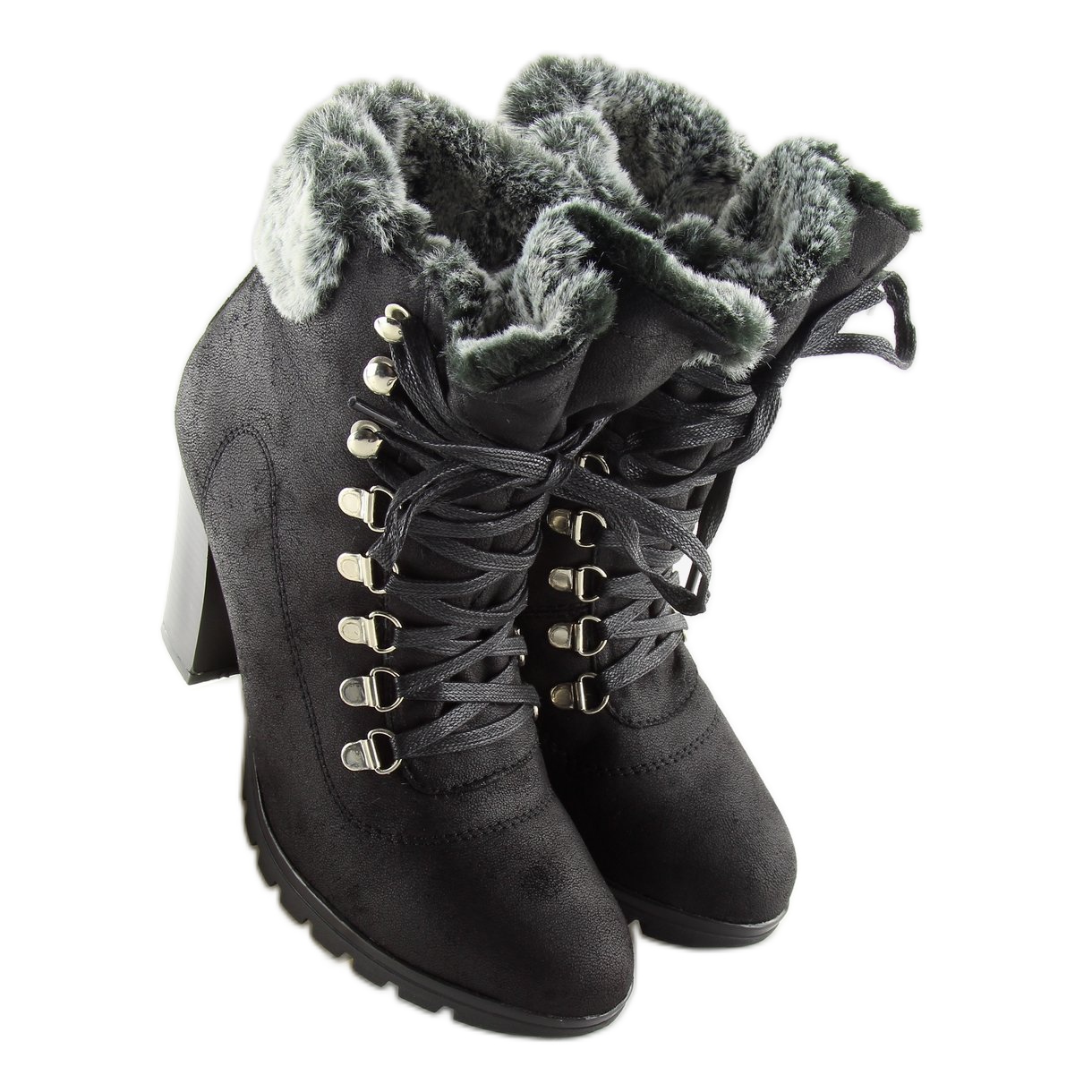 Entdecken Sie Eleganz und Komfort mit den schwarzen Stiefeletten N501 Black, die mit Sicherheit zu einem Schlüsselelement Ihrer Garderobe werden. Diese vom Stil der Timber-Stiefel inspirierten Damen-Schnürstiefeletten vereinen Komfort und modernes Design. Mit einem hohen Absatz von 9,5 cm und einer 2 cm dicken Trapezsohle bieten sie nicht nur eine ansprechende Optik, sondern auch Stabilität beim Gehen.