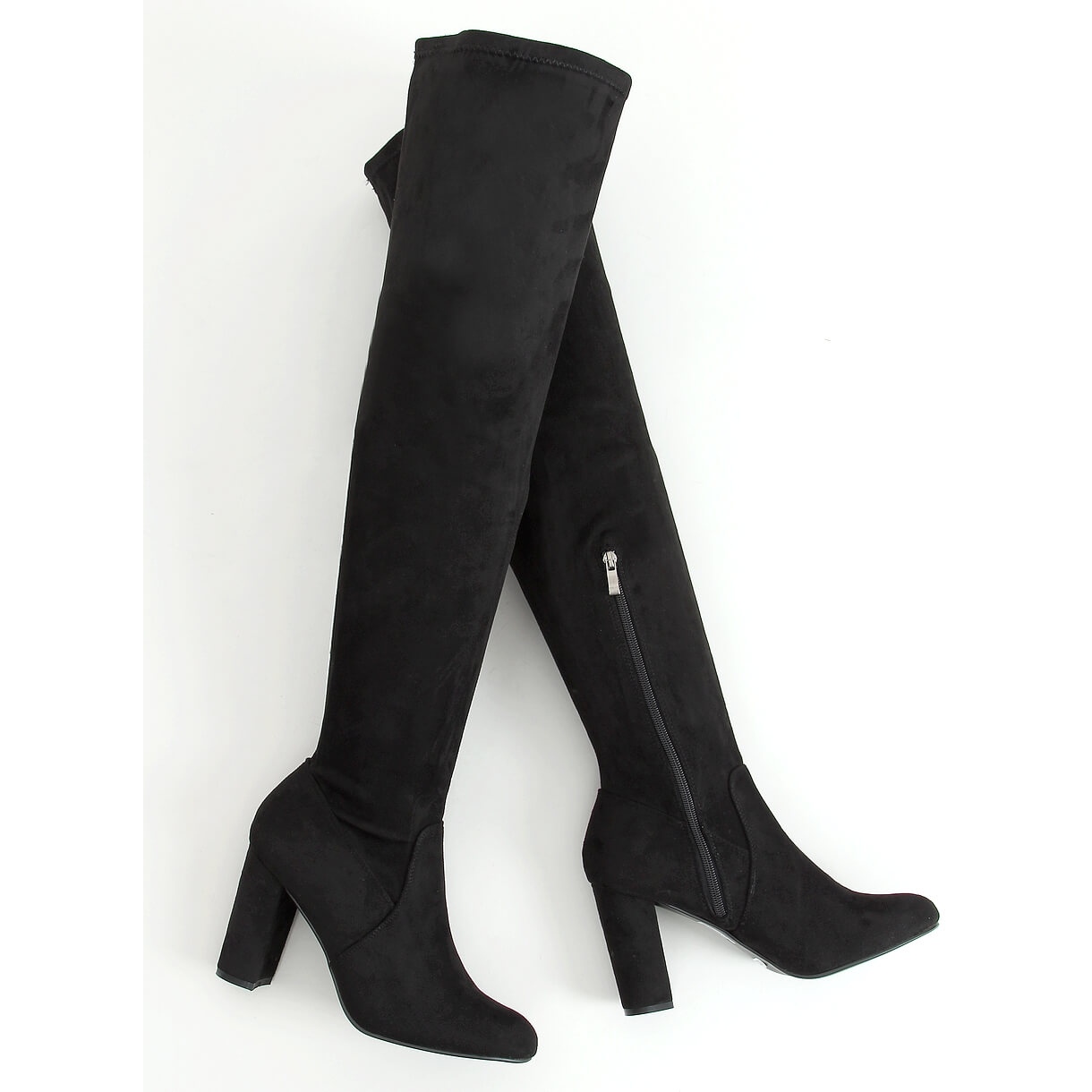 Wir präsentieren elegante Pantoletten mit hohen Absätzen SQ3269 in klassischem Schwarz, die sicherlich zu jedem Damen-Styling passen. Diese Overknee-Stiefel aus Wildleder sind die perfekte Kombination aus Komfort und Stil und eignen sich daher sowohl für alltägliche als auch für formellere Situationen.