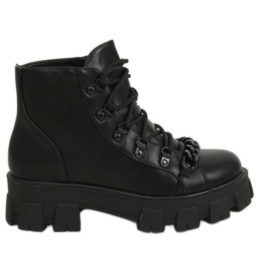Wir präsentieren Ihnen die schwarzen Schnürstiefel NC1106 mit hoher Sohle, die eine perfekte Kombination aus modischem Design und Komfort darstellen. Diese eleganten Stiefel in zeitlosem Schwarz werden mit Sicherheit die Aufmerksamkeit vieler Damen auf sich ziehen. Ihre charakteristische Silhouette verdanken sie einer hohen Sohle von 5 cm Höhe und einer auffälligen Kette auf der Vorderseite, die für Ausdruckskraft und einen einzigartigen Stil sorgt.