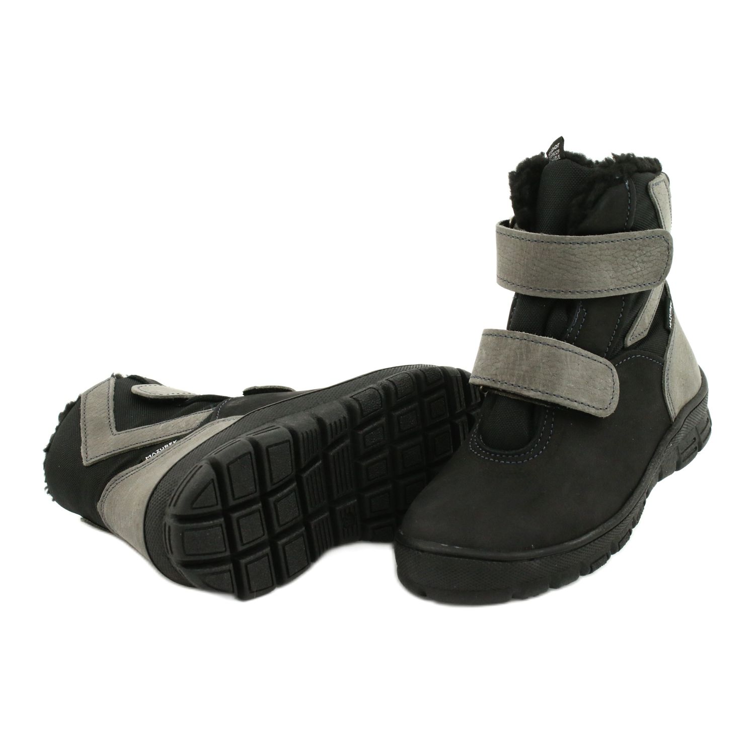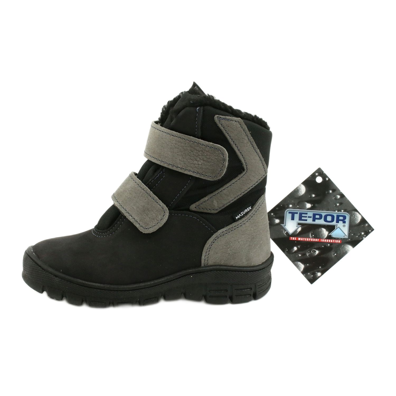 Die Membranstiefel Mazurek 1351 in Schwarz und Grau sind die perfekte Lösung für aktive Jungen, die bequeme und funktionelle Schuhe für Wintertage benötigen. Die aus hochwertigem Naturleder und Stoff gefertigten Kinderschuhe bieten dank der TE-POR-Membran, die Wasser effektiv abhält, maximalen Schutz vor Feuchtigkeit.