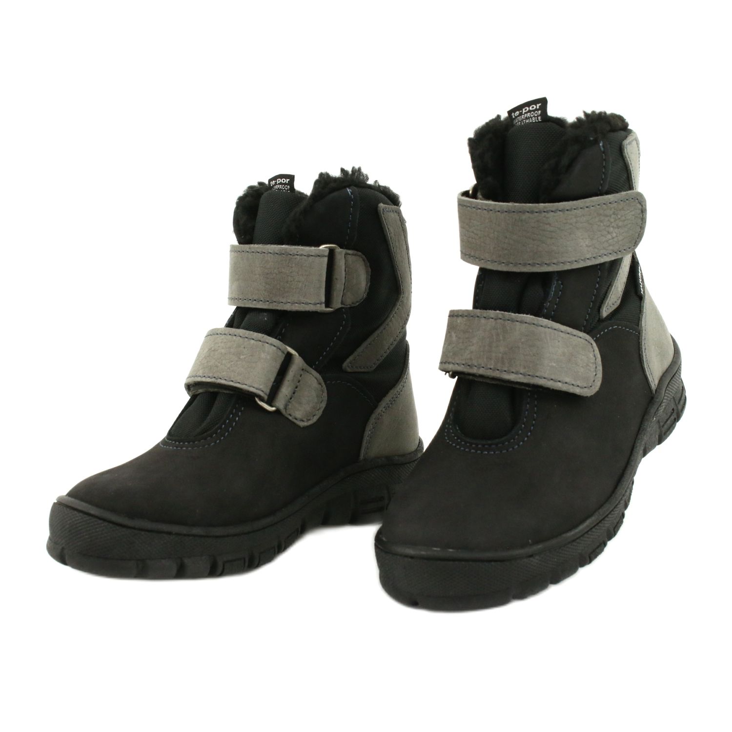 Wir präsentieren Stiefel mit der TE-POR Mazurek 1351 Membran in Schwarz und Grau. Dies ist das perfekte Schuhwerk für die Kleinsten, das dank der Kombination von Naturleder mit zusätzlichem Material maximalen Komfort und Wärme bei Winterspaziergängen bietet.